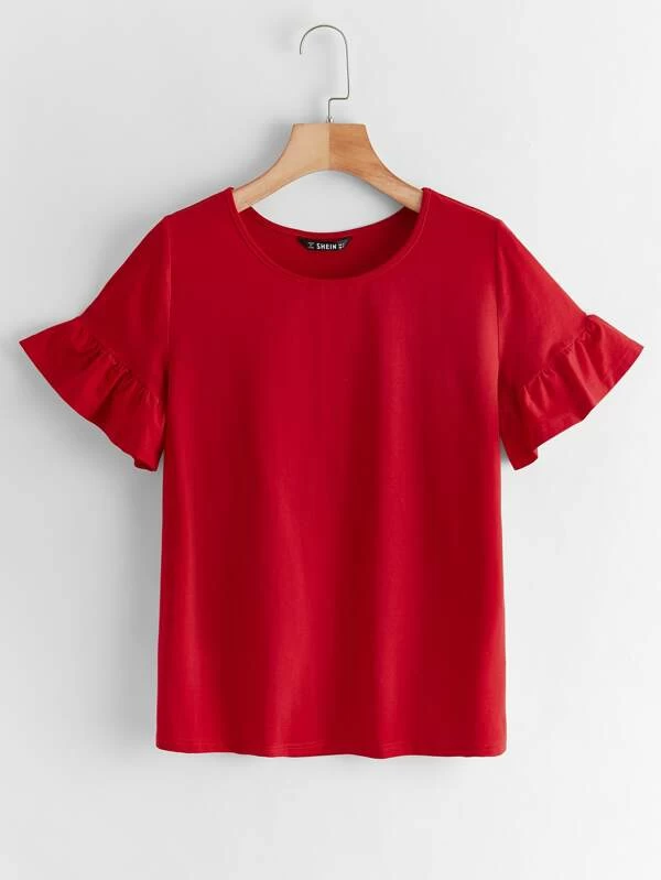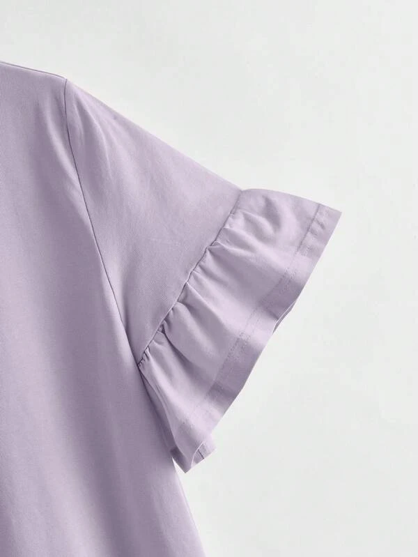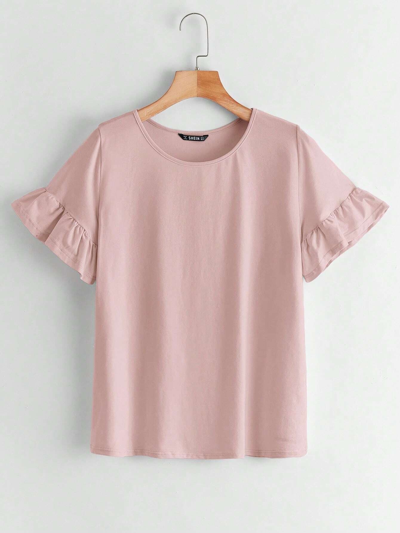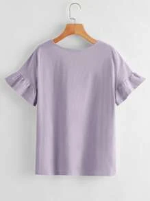 Camiseta s?lida de pu?o fruncido