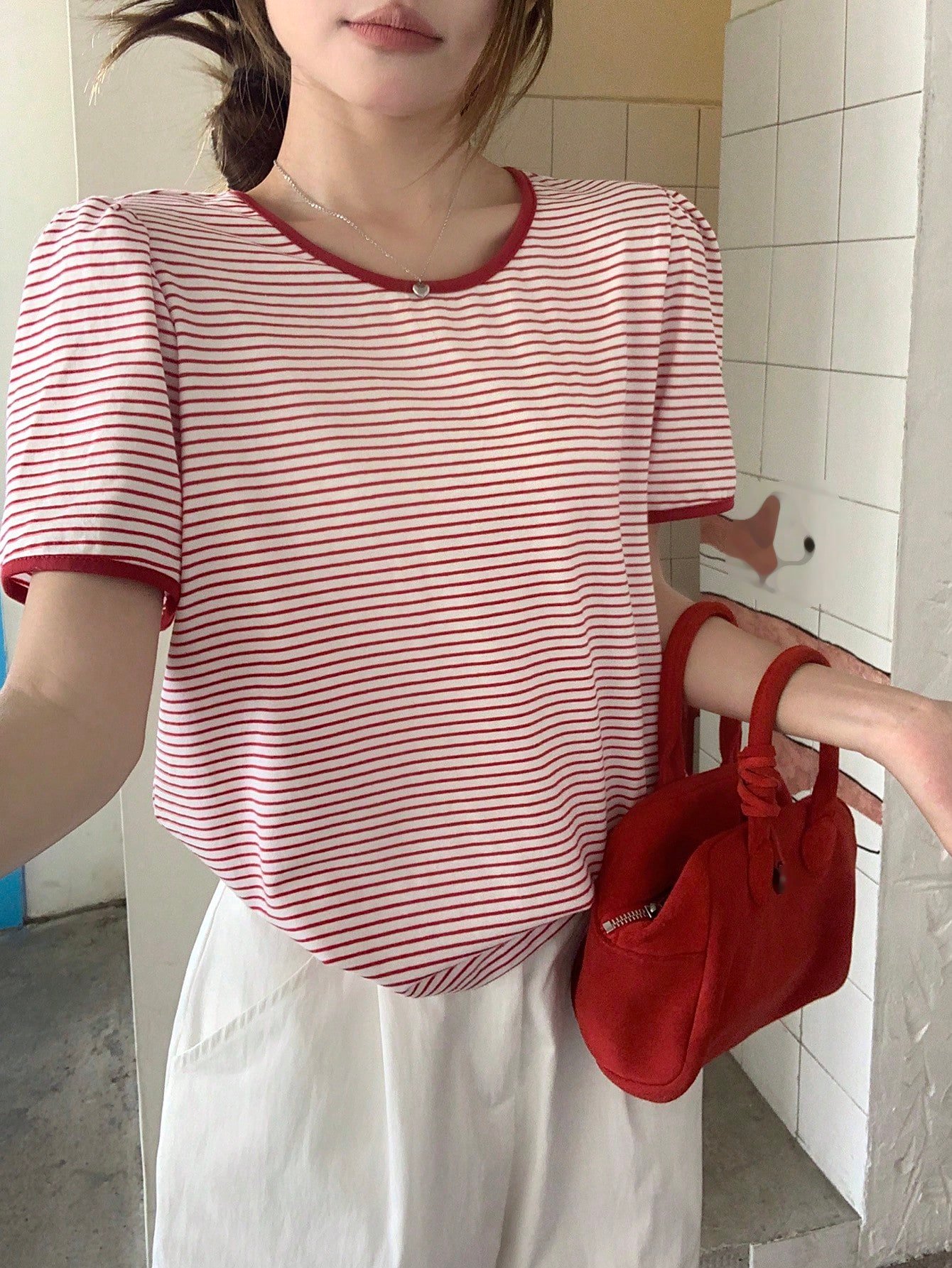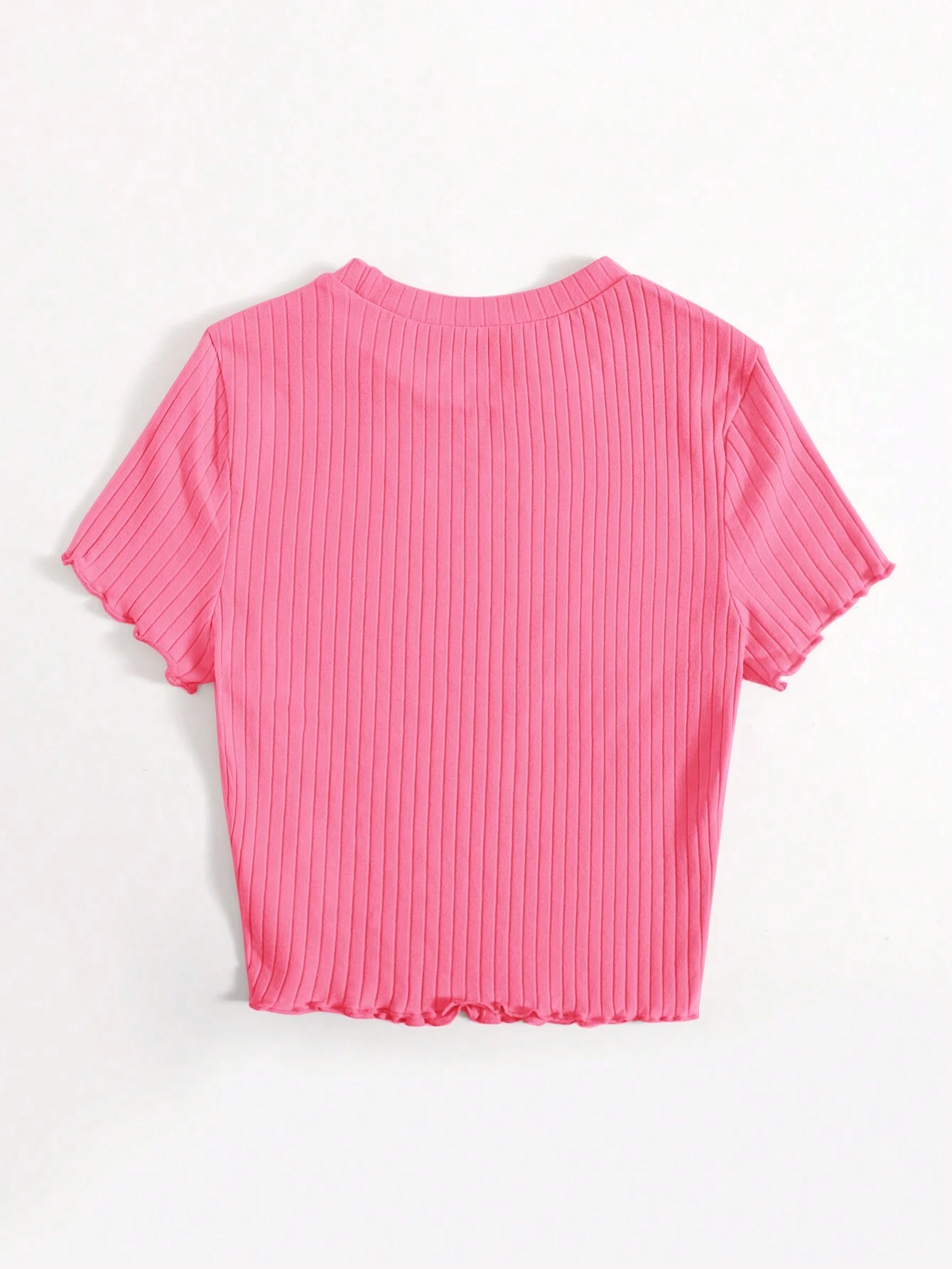 Camiseta tejida de canalé ribete en forma de lechuga unicolor