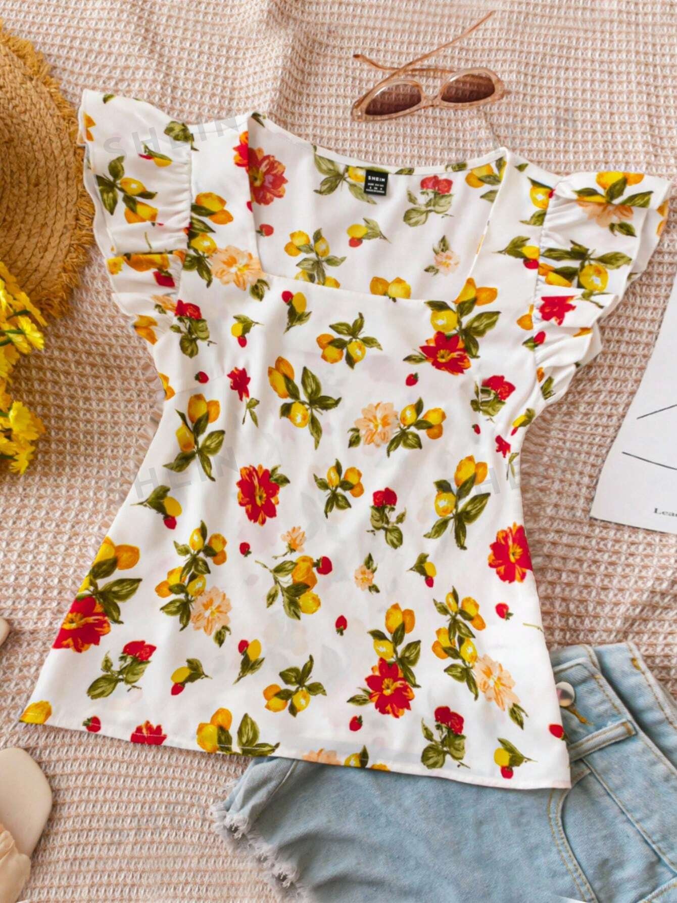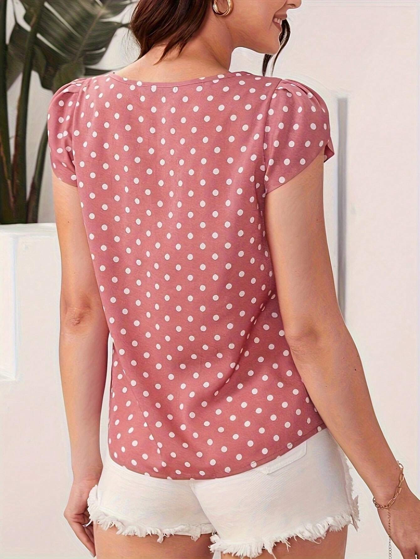 Camiseta top casual y elegante con estampado de lunares y cuello redondo