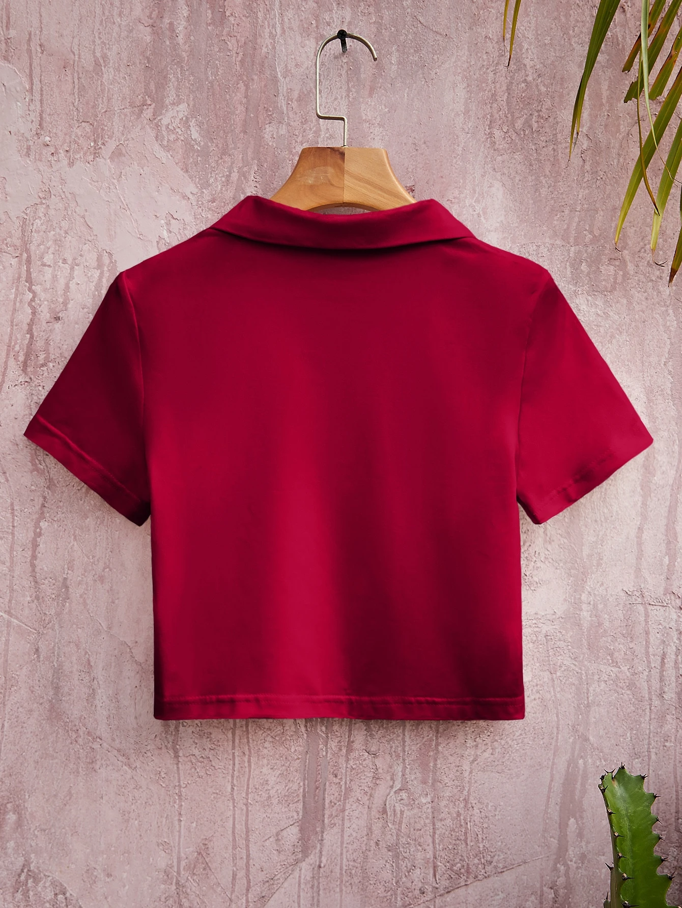 Camiseta bustier con estampado floral de hombros descubiertos rojo