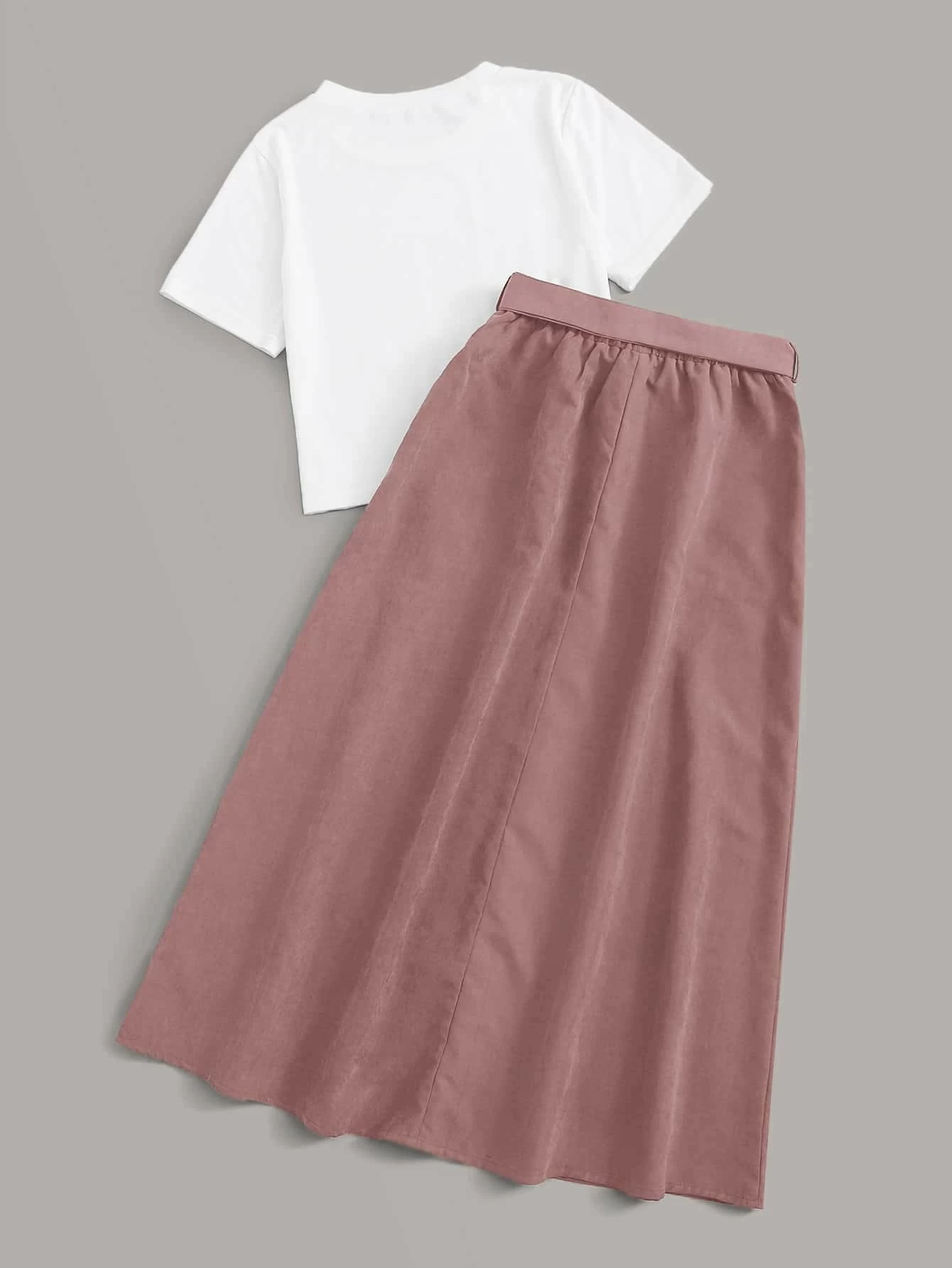 Camiseta unicolor con falda con bot?n delantero con lazo