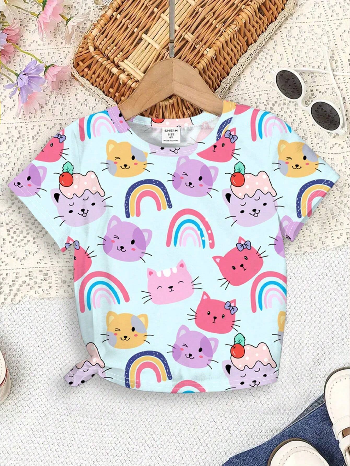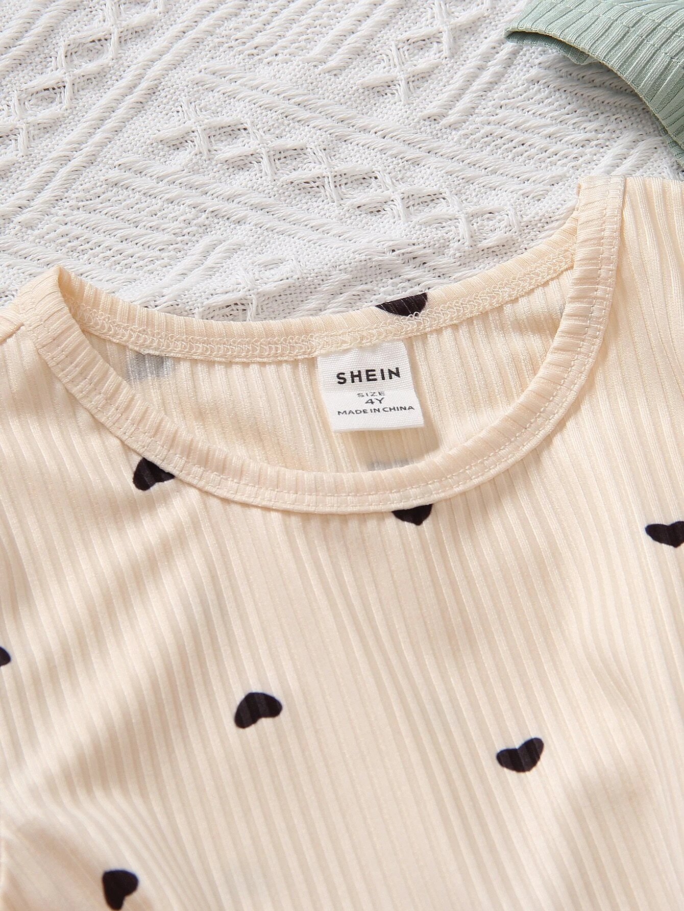 Camisetas De Corazones Y Rayas Impresas Para Niñas