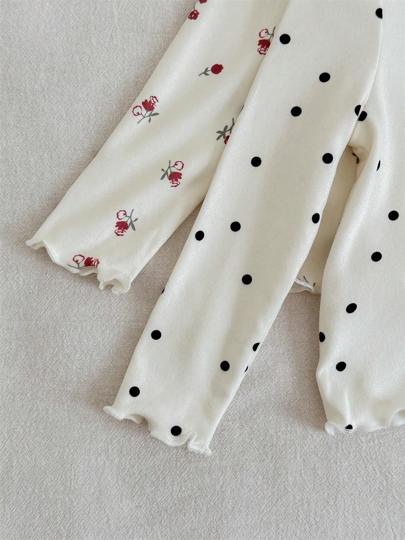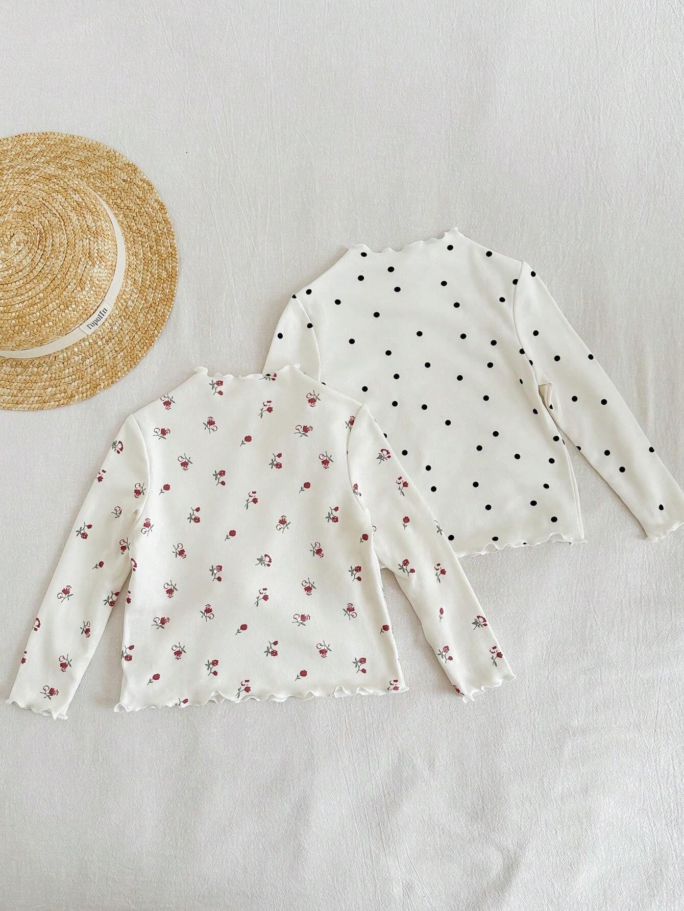 Camisetas manga larga con estampado de lunares y flores para niña bebé