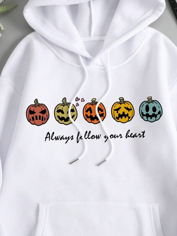 Capucha t?rmica con estampado de halloween con bolsillo de canguro con cord?n