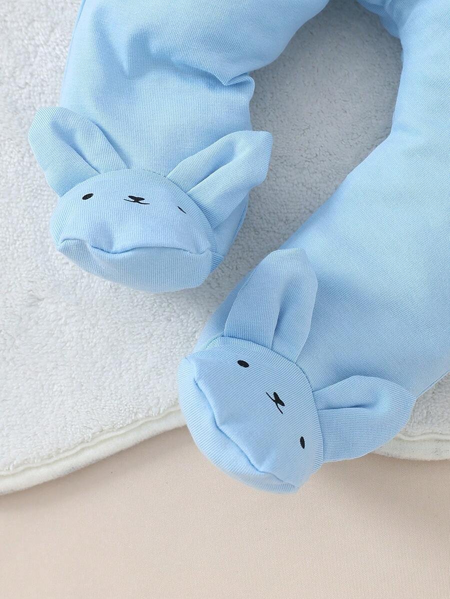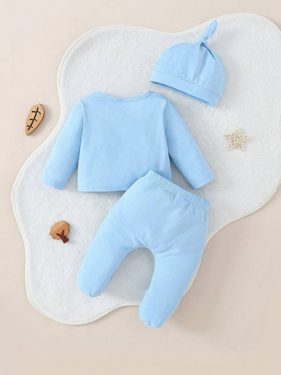 Cárdigan azul de unicolor de manga larga y pantalones con gorro