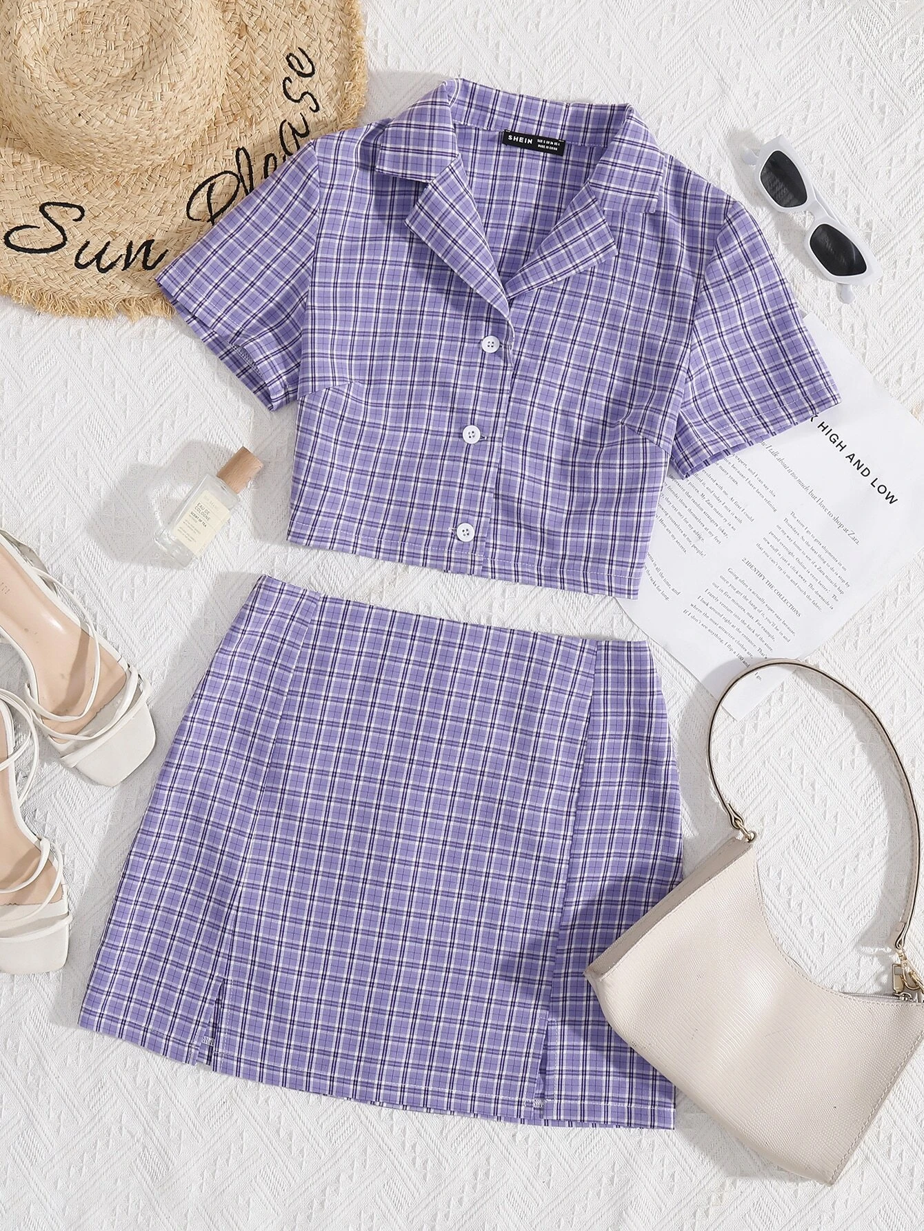 Cazadora crop & Falda con estampado de cuadros con parte delantera abierta