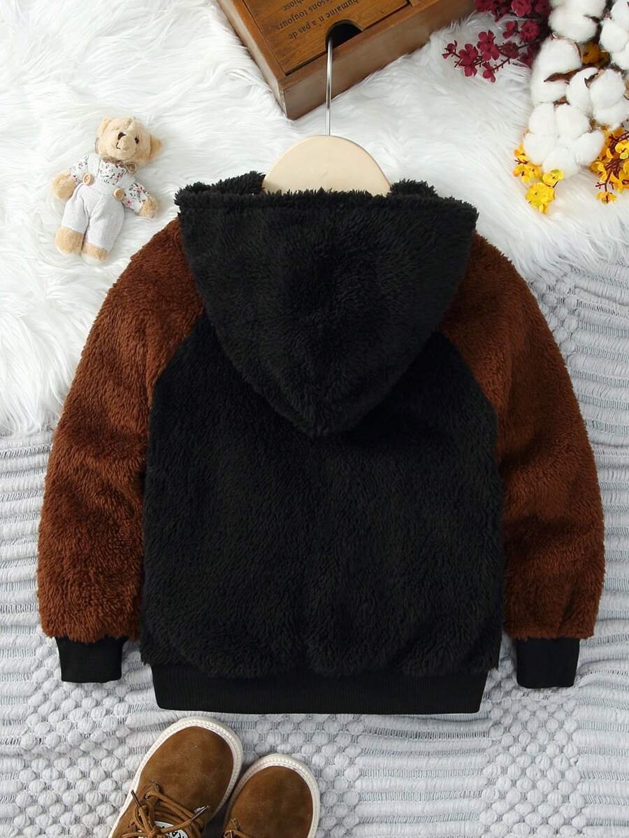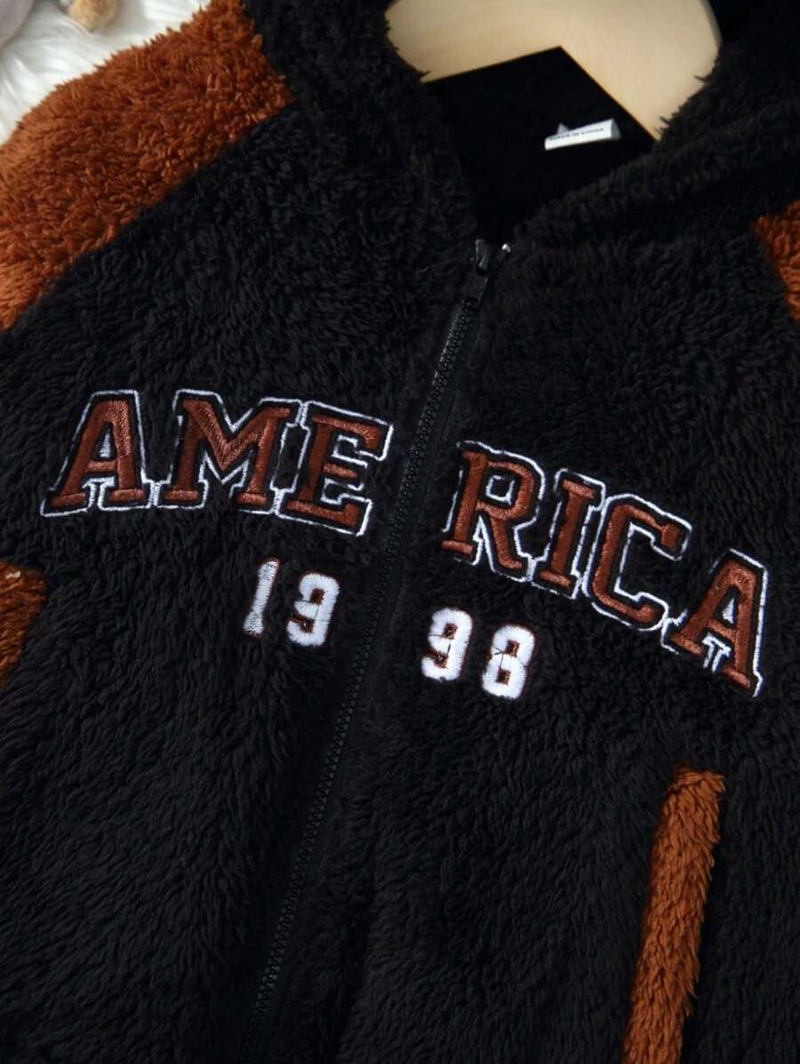 Cazadora teddy con bordado de letra de manga raglan con capucha sin jersey