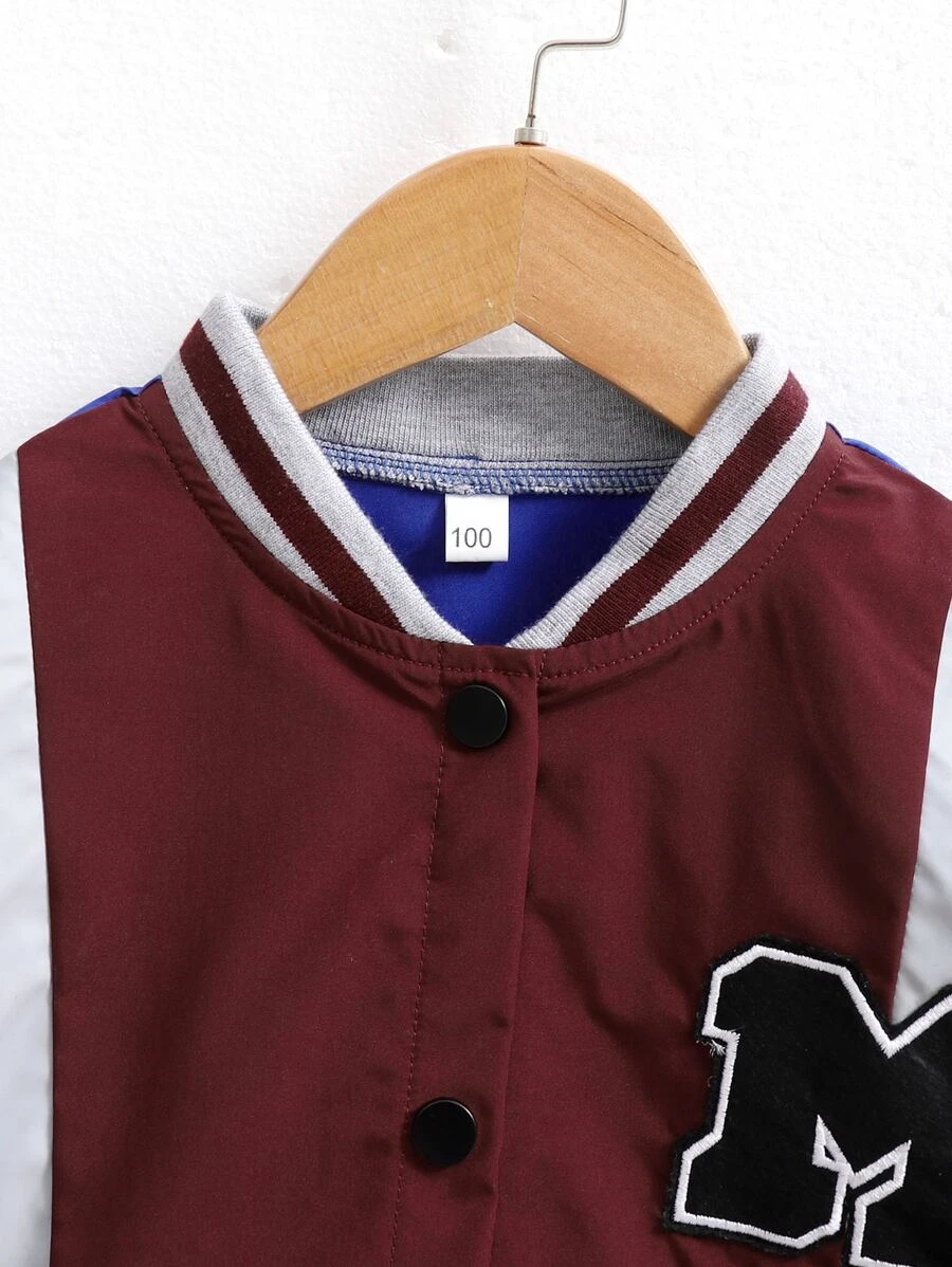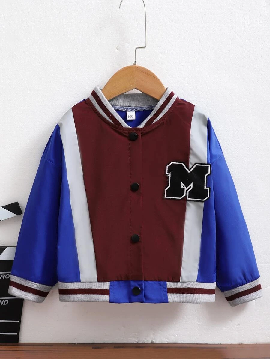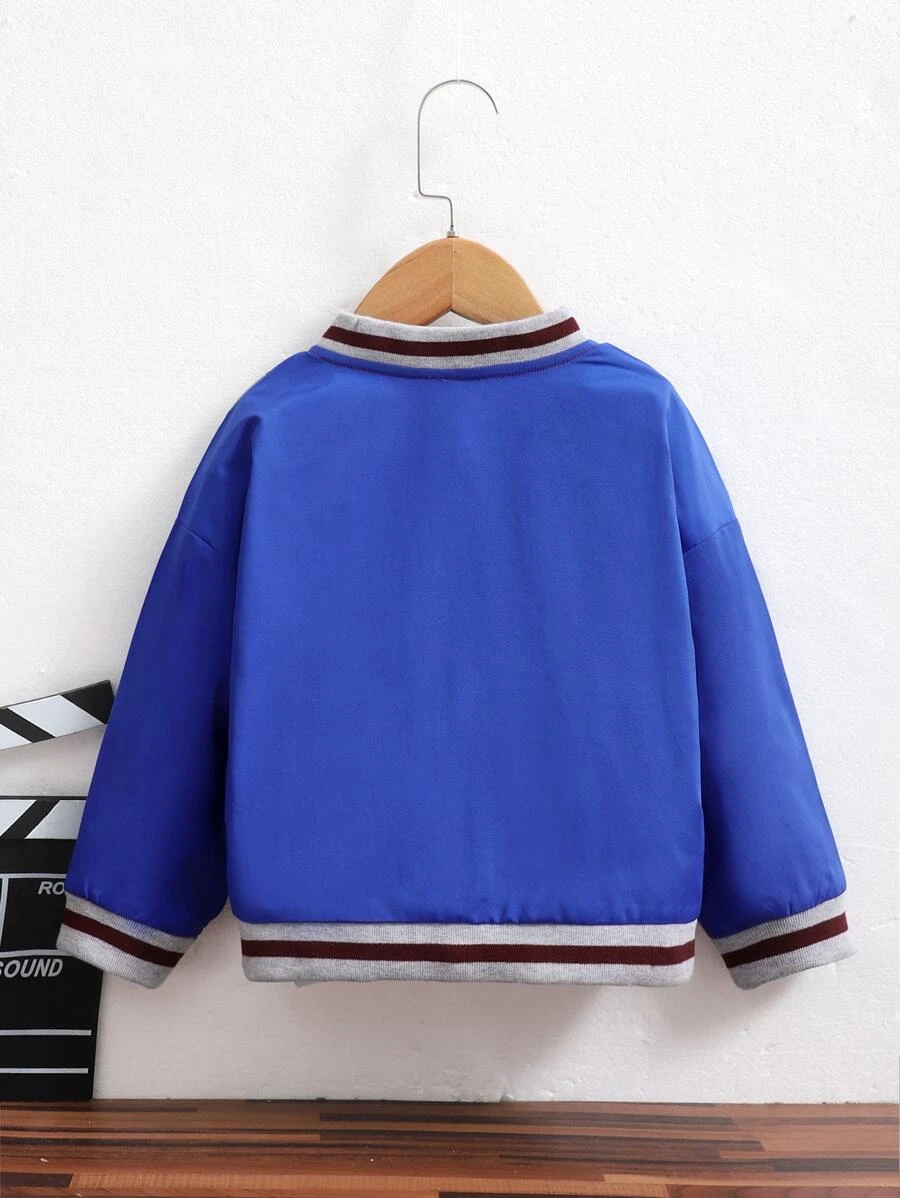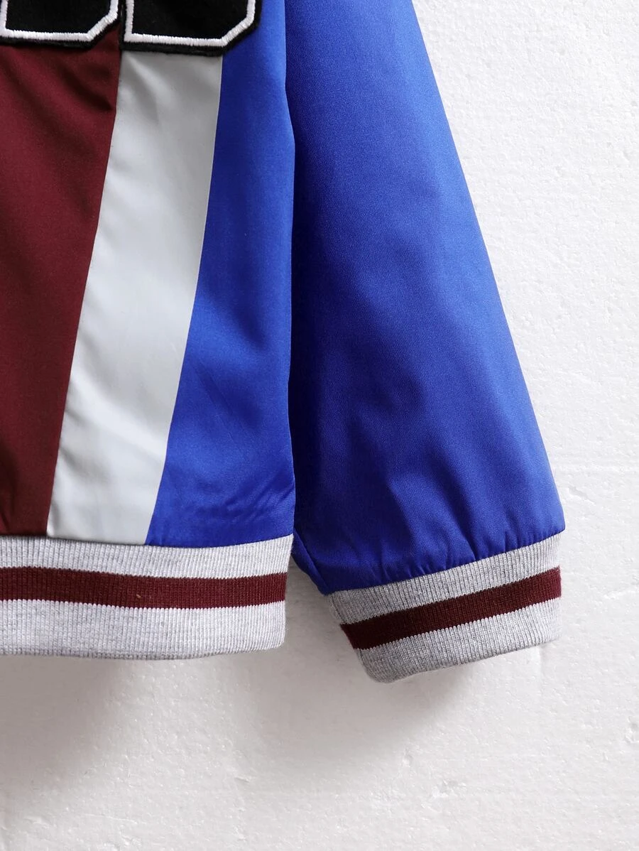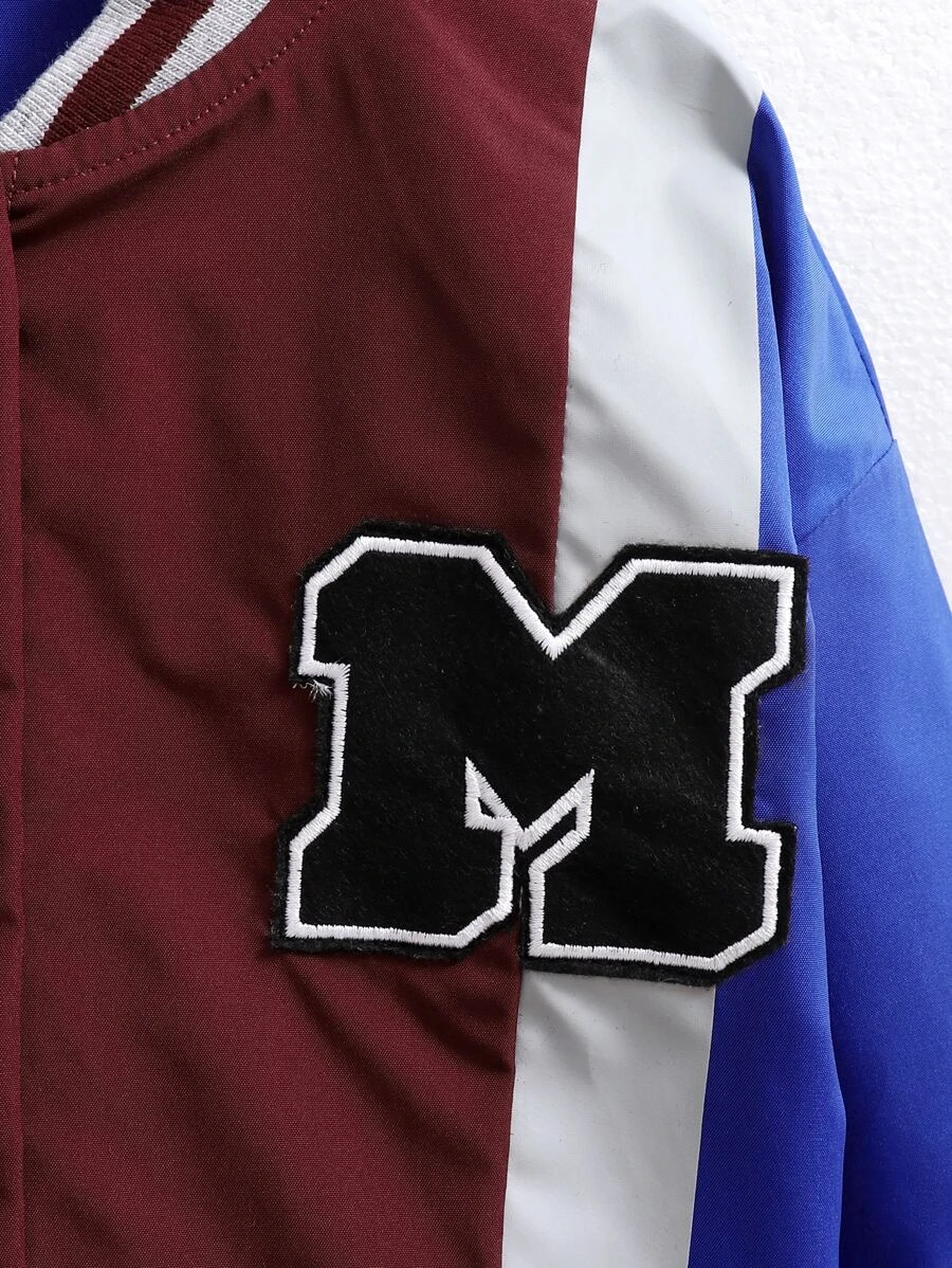 Cazadora tipo bomber con parche de letra de color combinado ribete de rayas