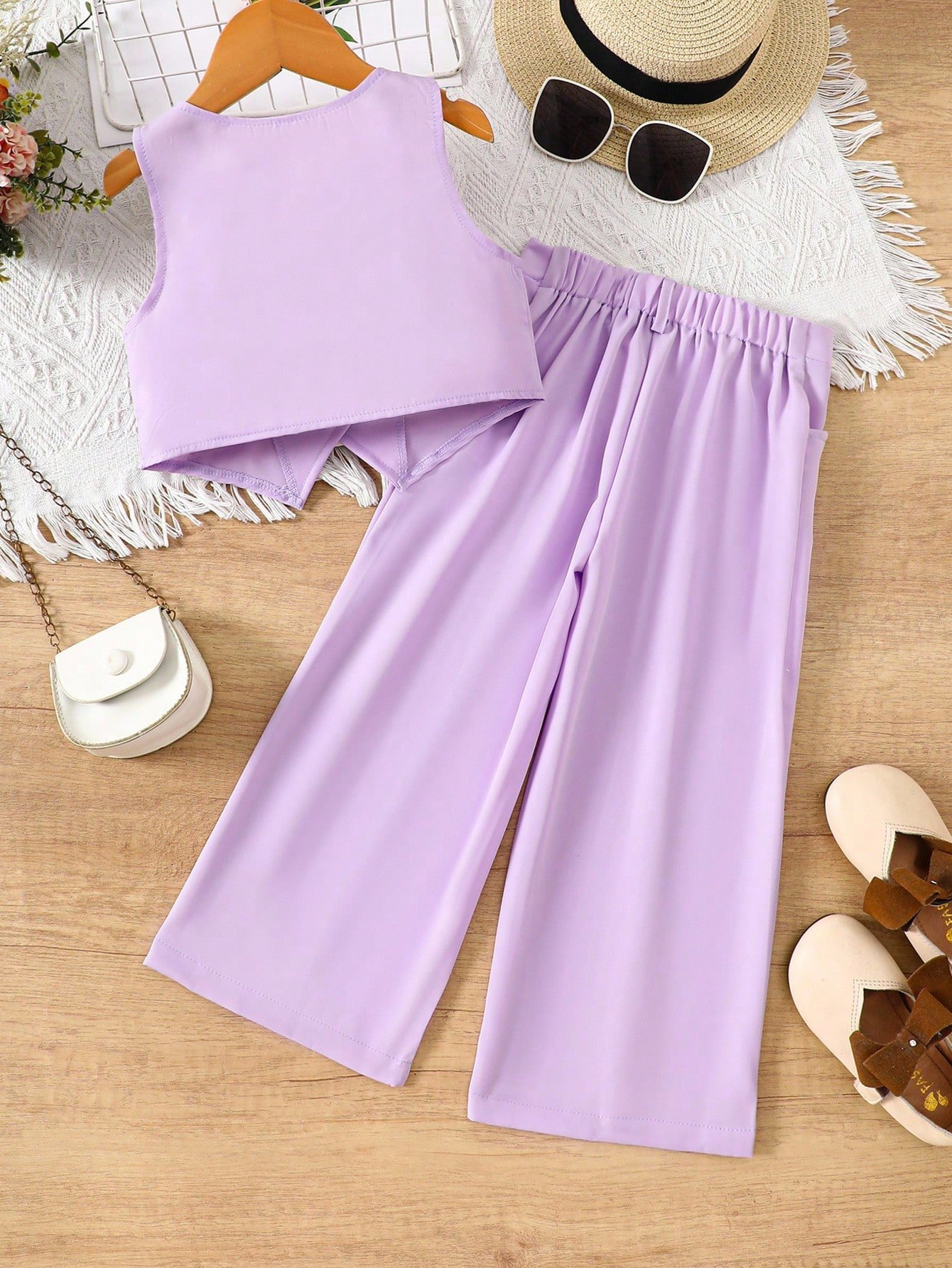 Chaleco de un solo pecho de unicolor y pantalones de pierna ancha