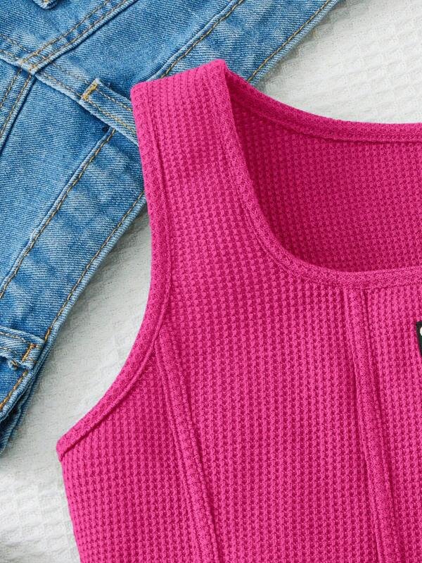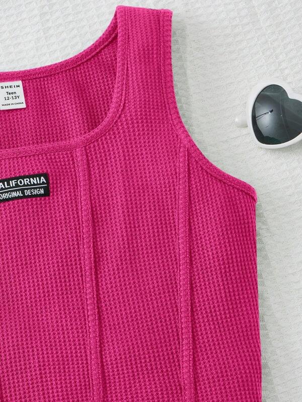 Chica adolescente Top tank con dise?o de parche de letra bajo curvo