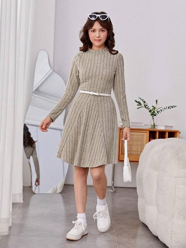 Chica adolescente Vestido de cuello alto tejido de canal? sin cintur?n