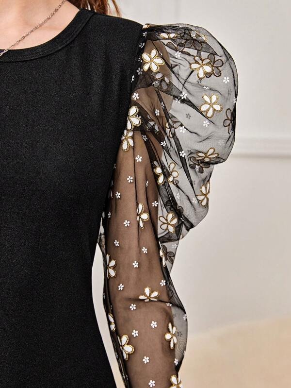 Chica adolescente Vestido de fiesta de malla en contraste de manga gigot