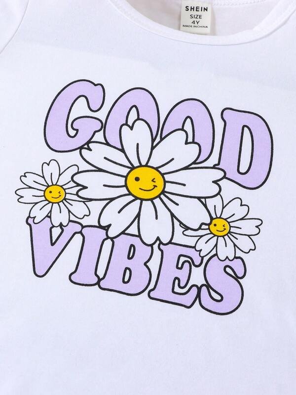 Chica Joven con estampado floral con letra Camiseta & Falda fruncido
