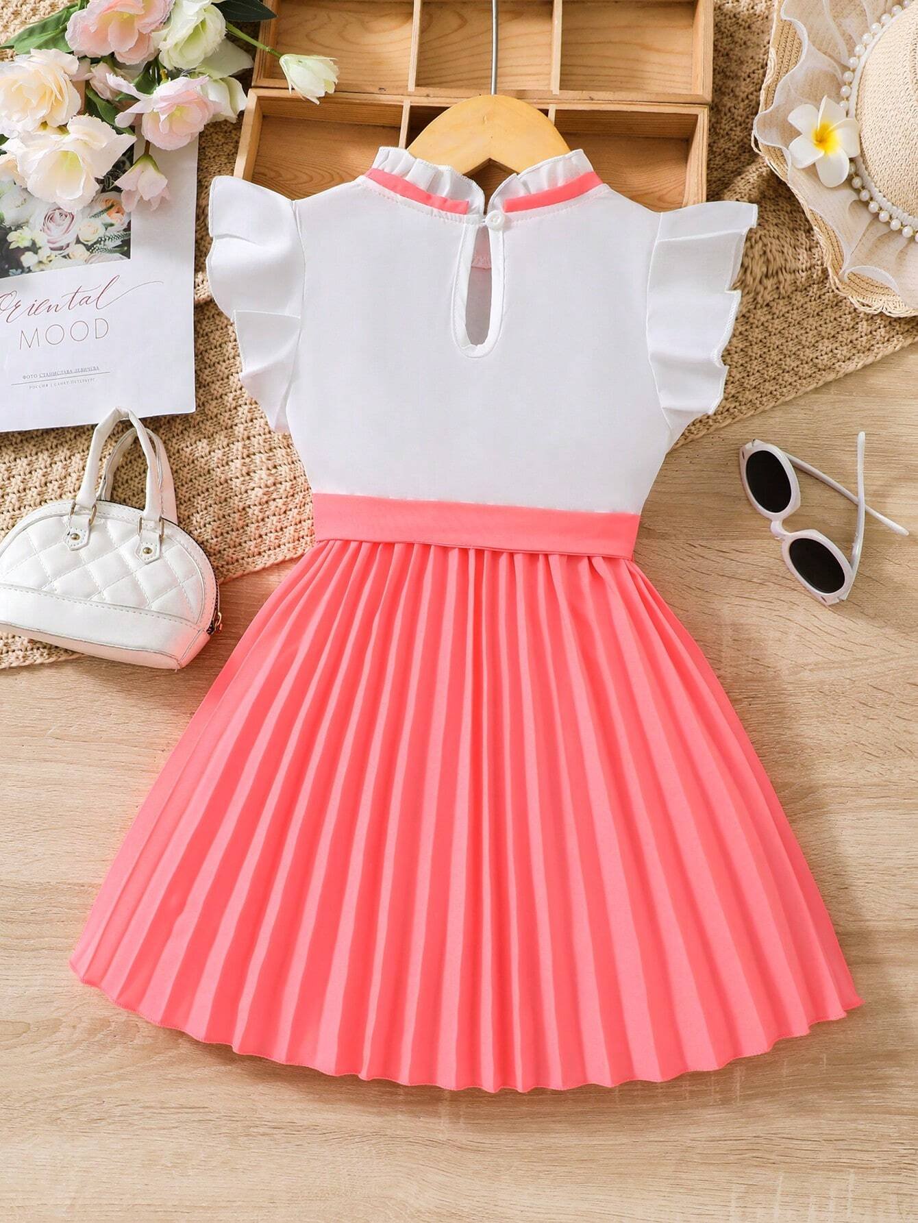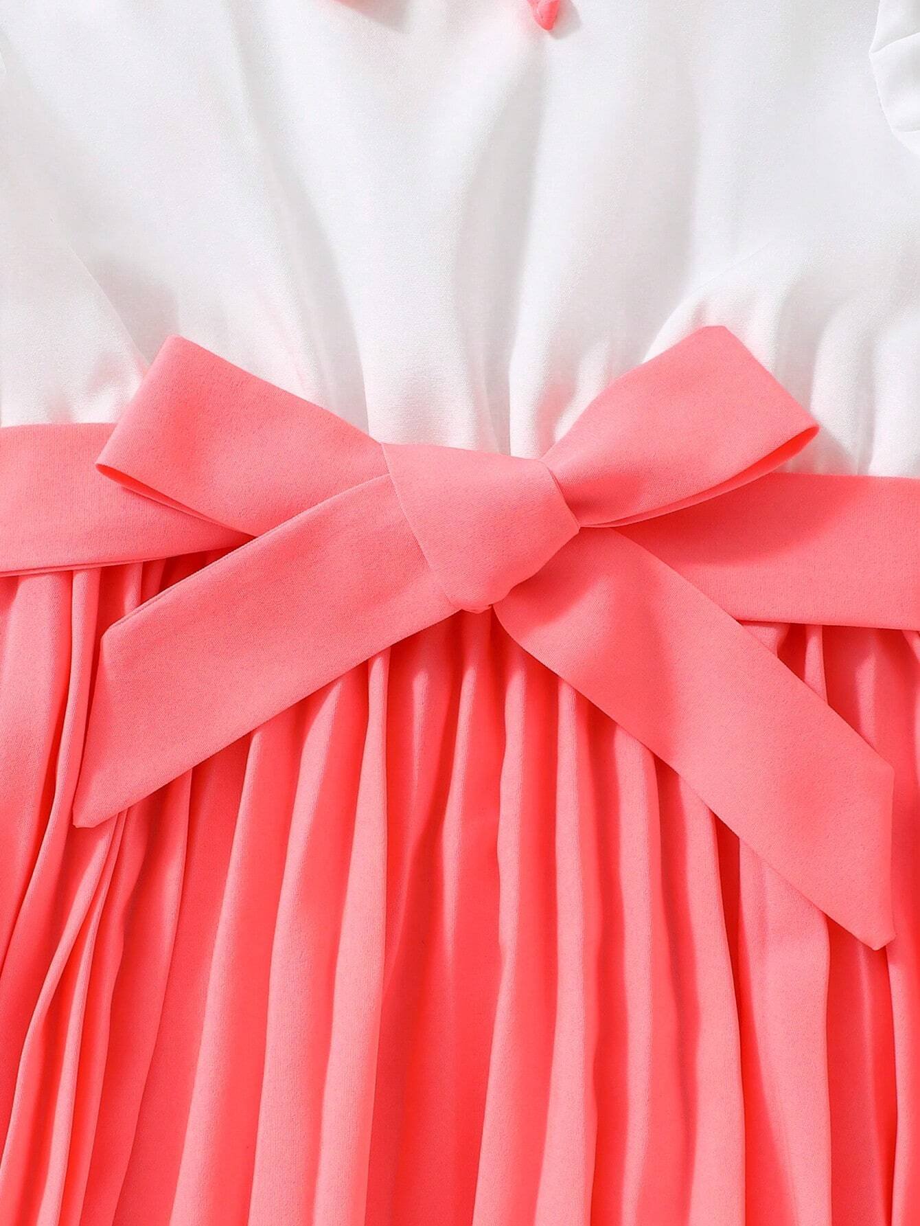 Chica Joven Vestido con cintur?n de dos tonos con lazo delantero