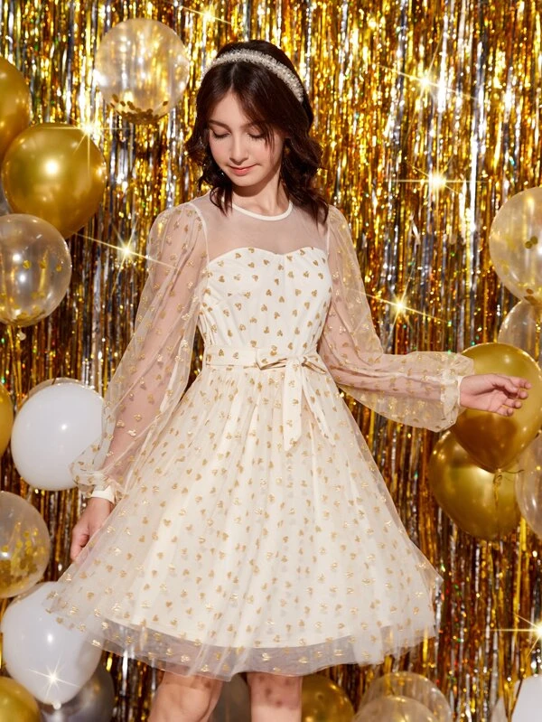 Chica Joven Vestido de punto con patr?n de lunares con lazo delantero tejido de cable