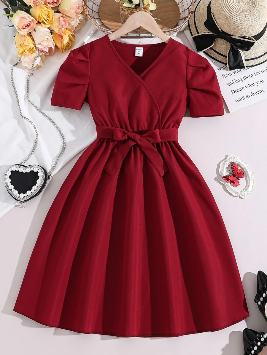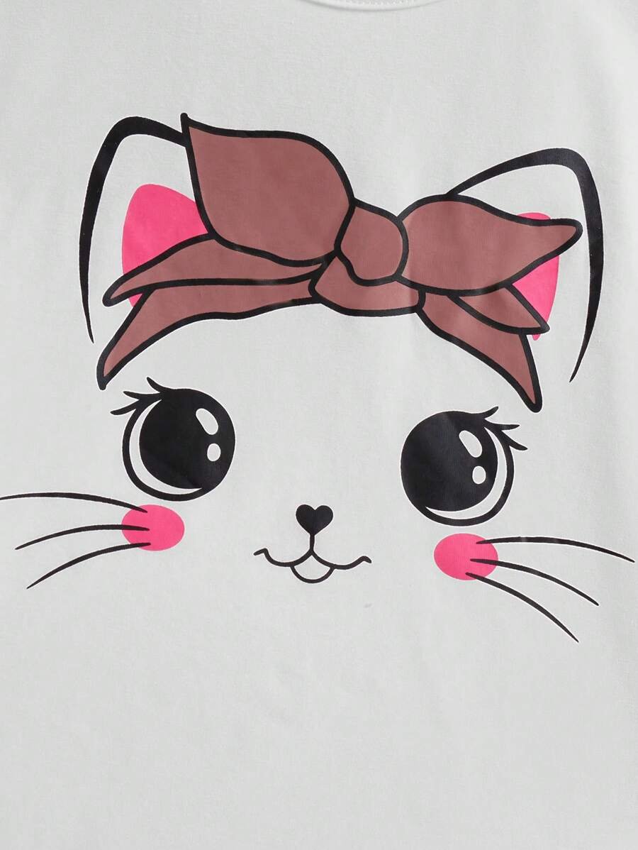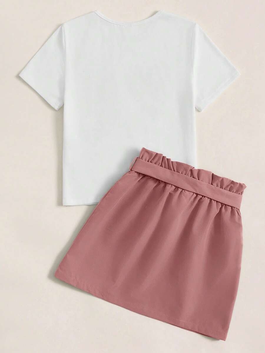 Chica preadolescente con estampado de dibujos animados Camiseta & de cintura con volante con cintur?n Falda