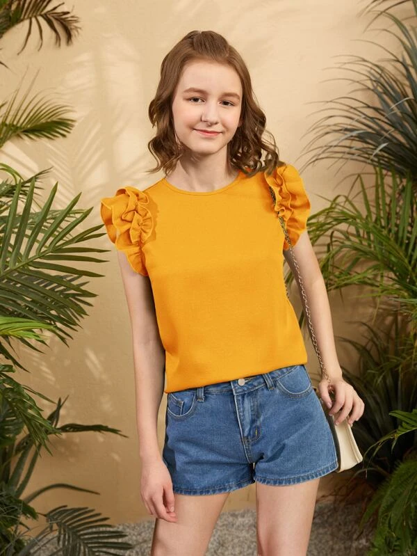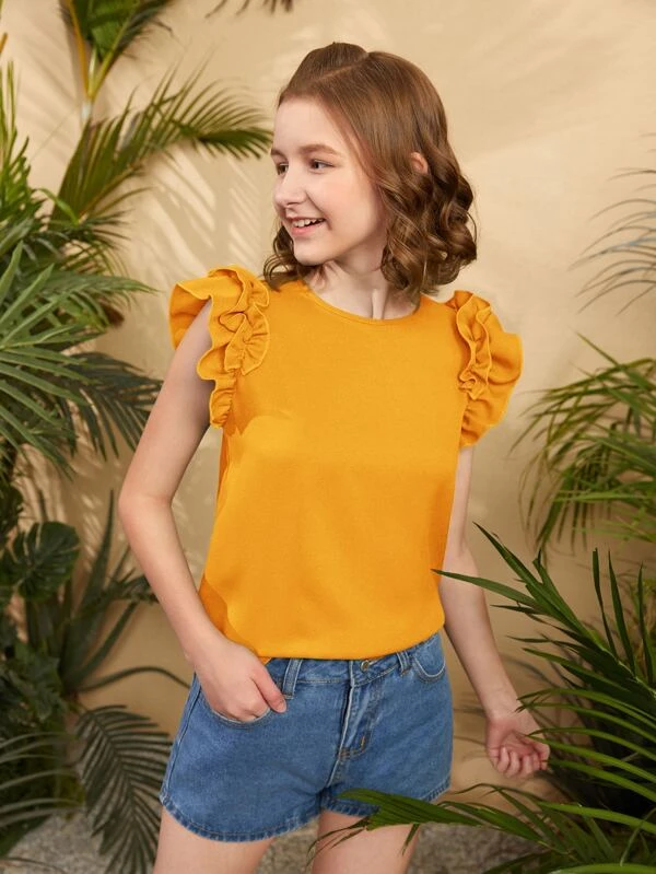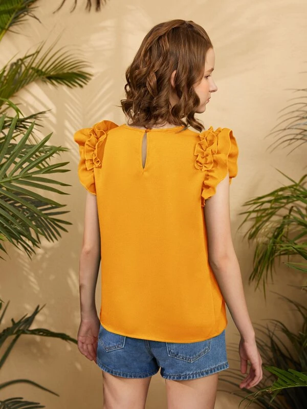 Chicas adolescentes Blusa de manga con volante de espalda con abertura de ojo