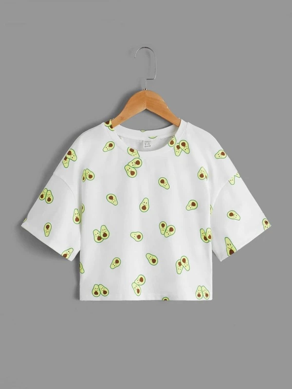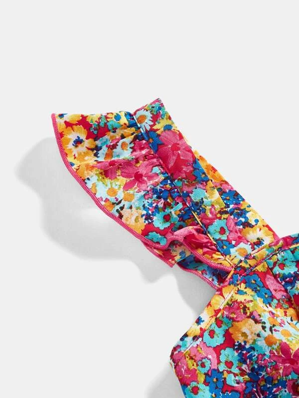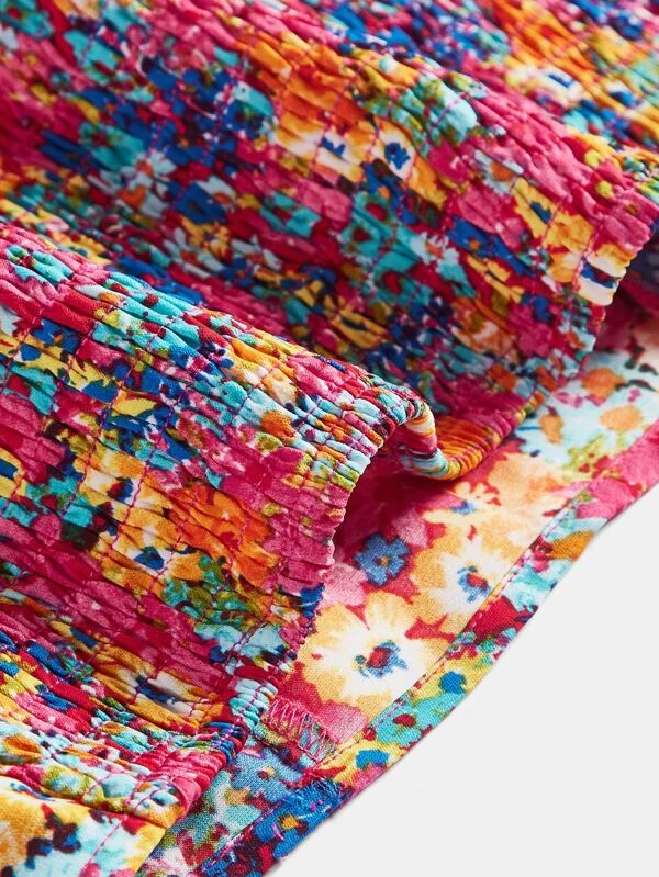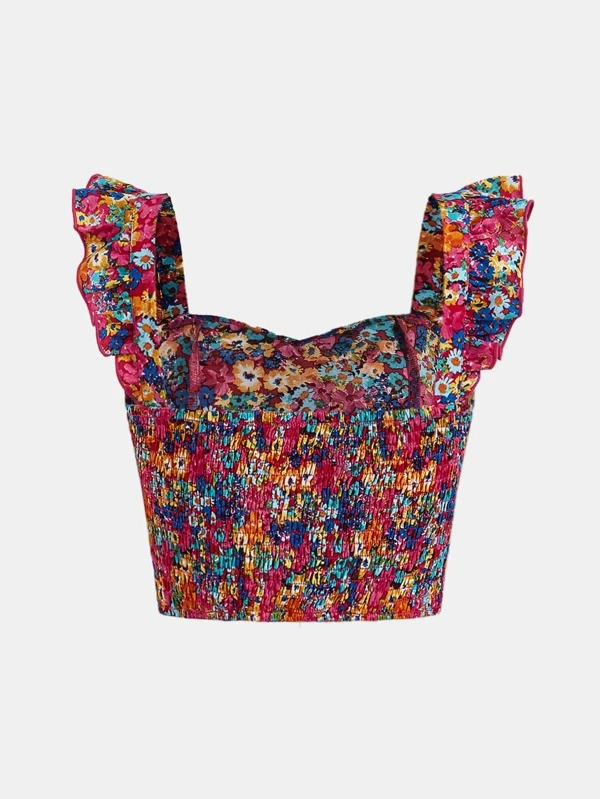Chicas adolescentes Camisa crop con estampado floral ribete con fruncido