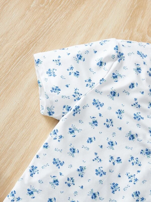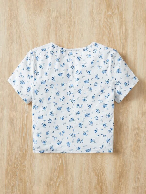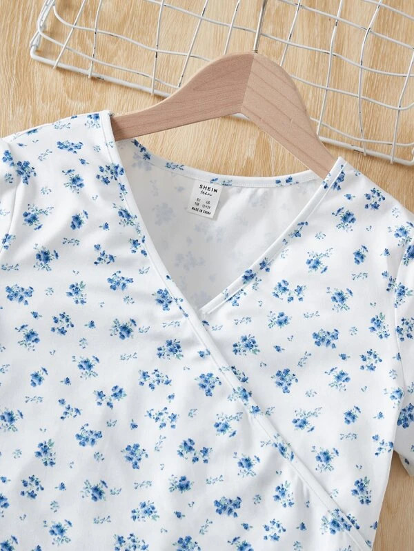 Chicas adolescentes Camiseta con estampado floral de cuello cruzado