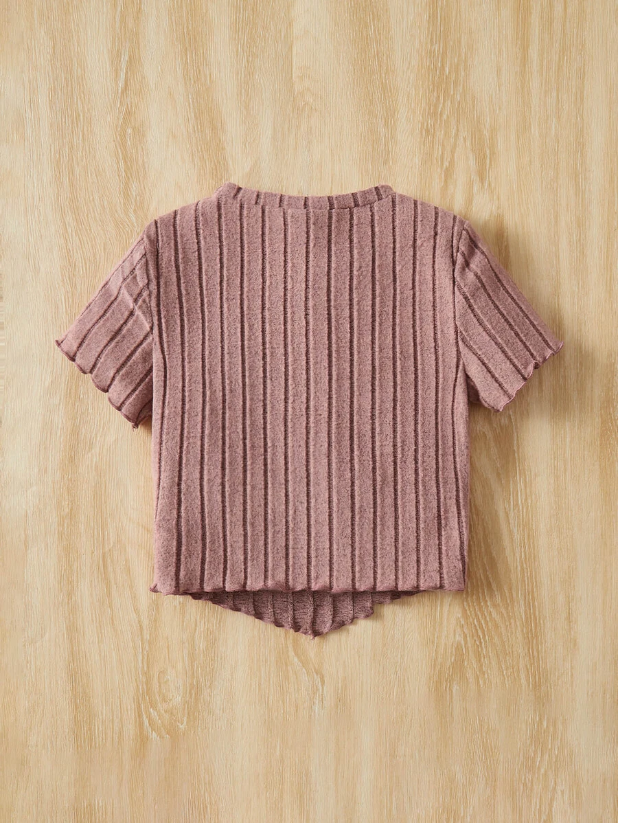Chicas adolescentes Camiseta ribete en forma de lechuga bajo hanky