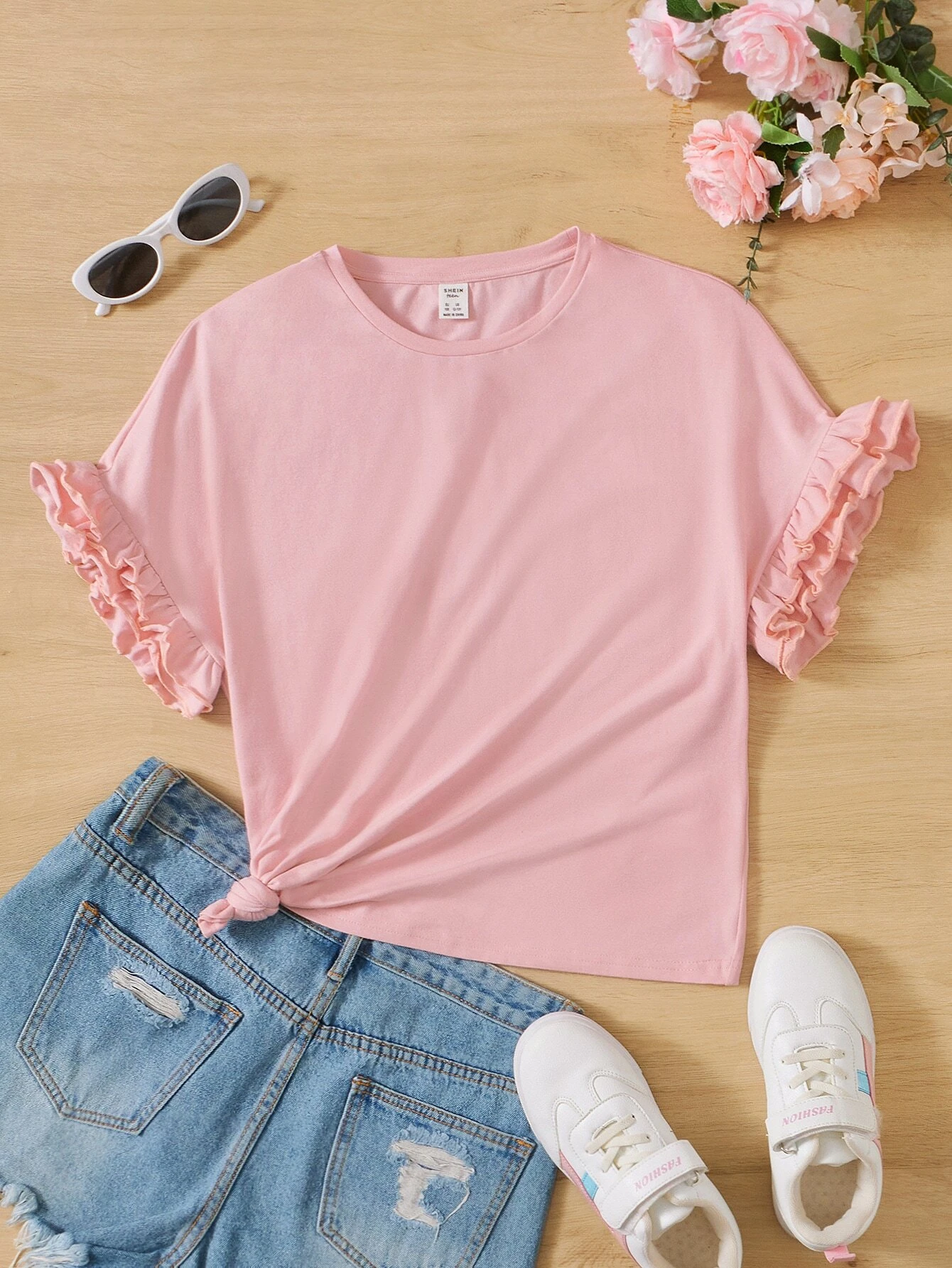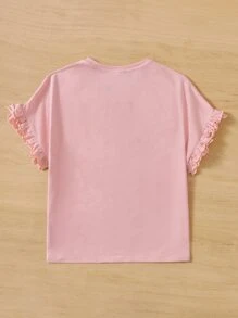 Chicas adolescentes Camiseta ribete fruncido de manga con volante