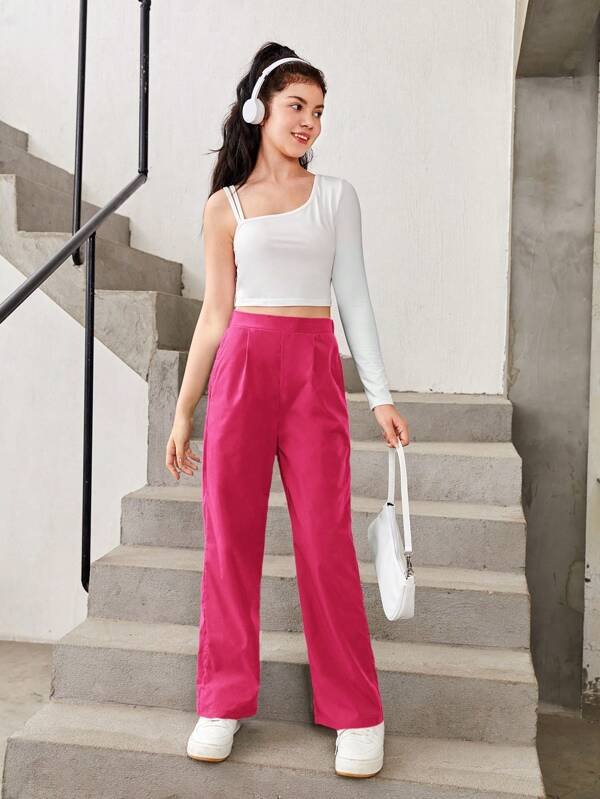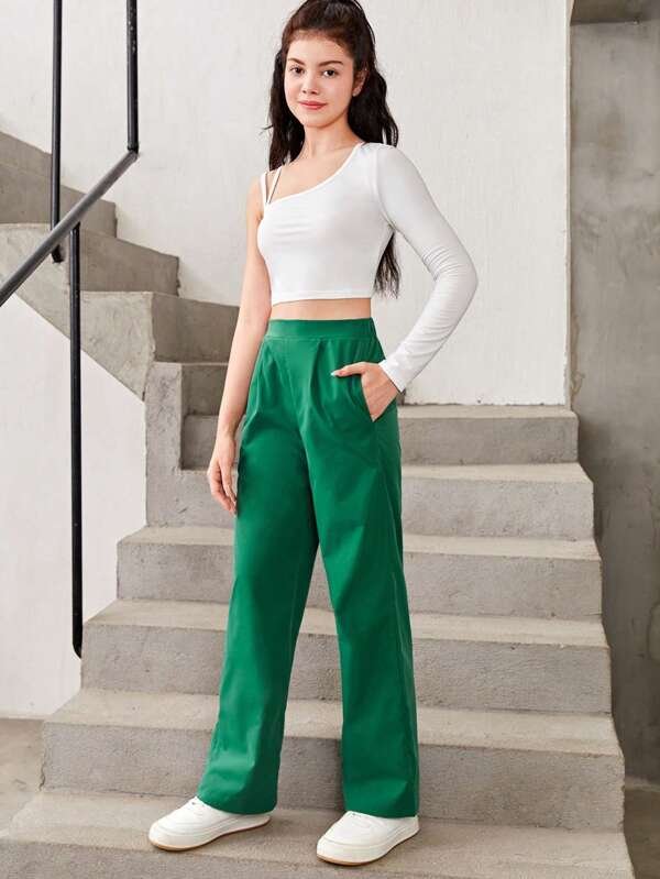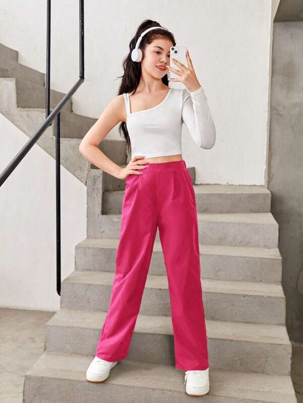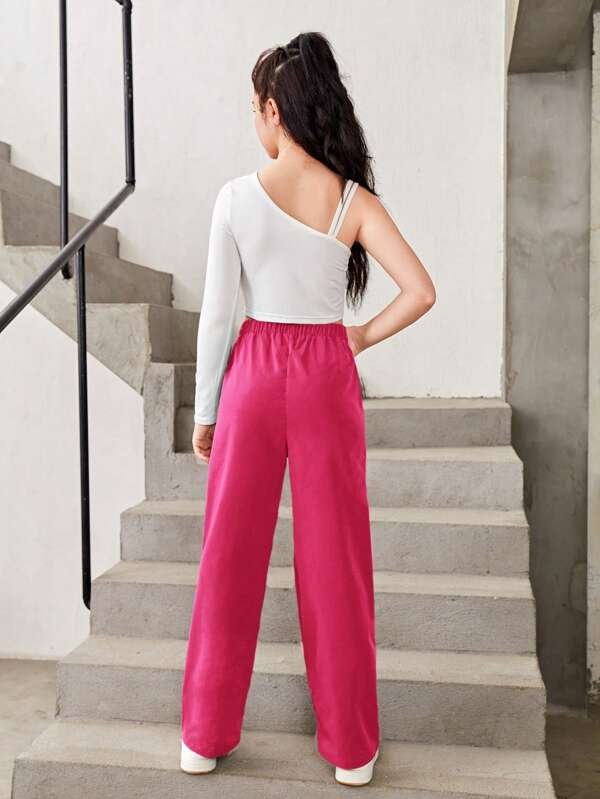 Chicas adolescentes de cuello asim?trico Top crop & con fruncido Pantalones