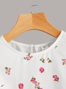Chicas adolescentes Top con estampado floral ribete con fruncido