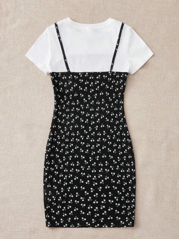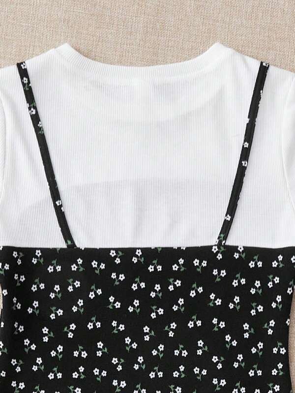 Chicas adolescentes Vestido 2 en 1 con estampado floral