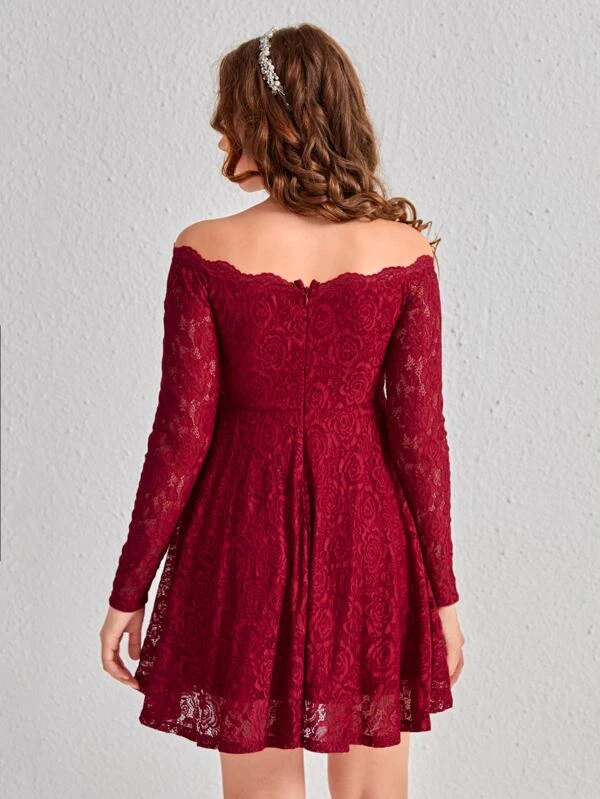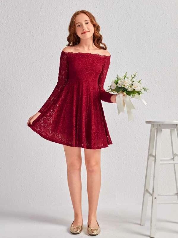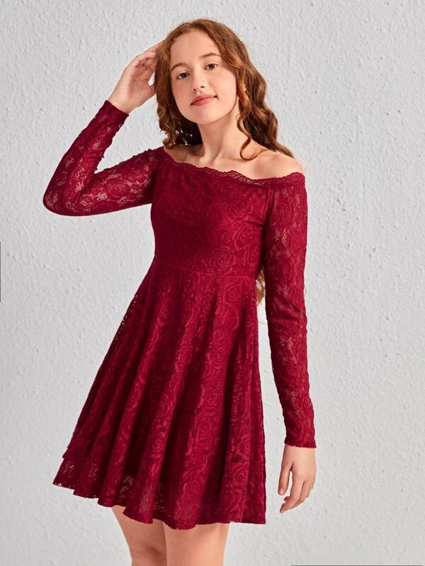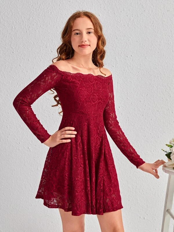 Chicas adolescentes Vestido con encaje floral de hombros descubiertos