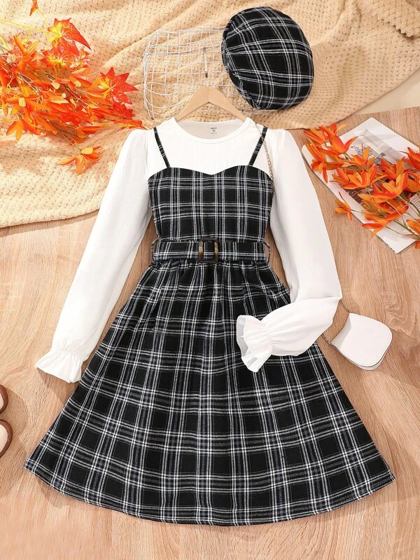 Chicas adolescentes Vestido de cuello cuadrado de dos tonos