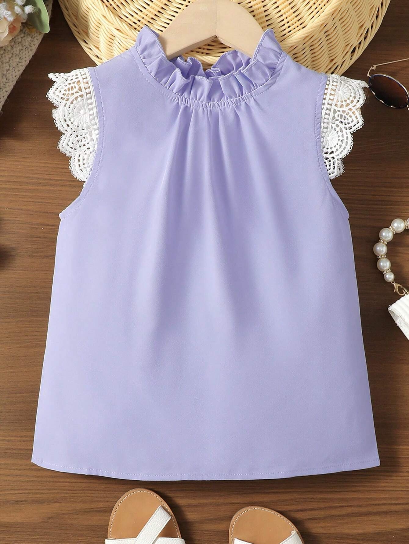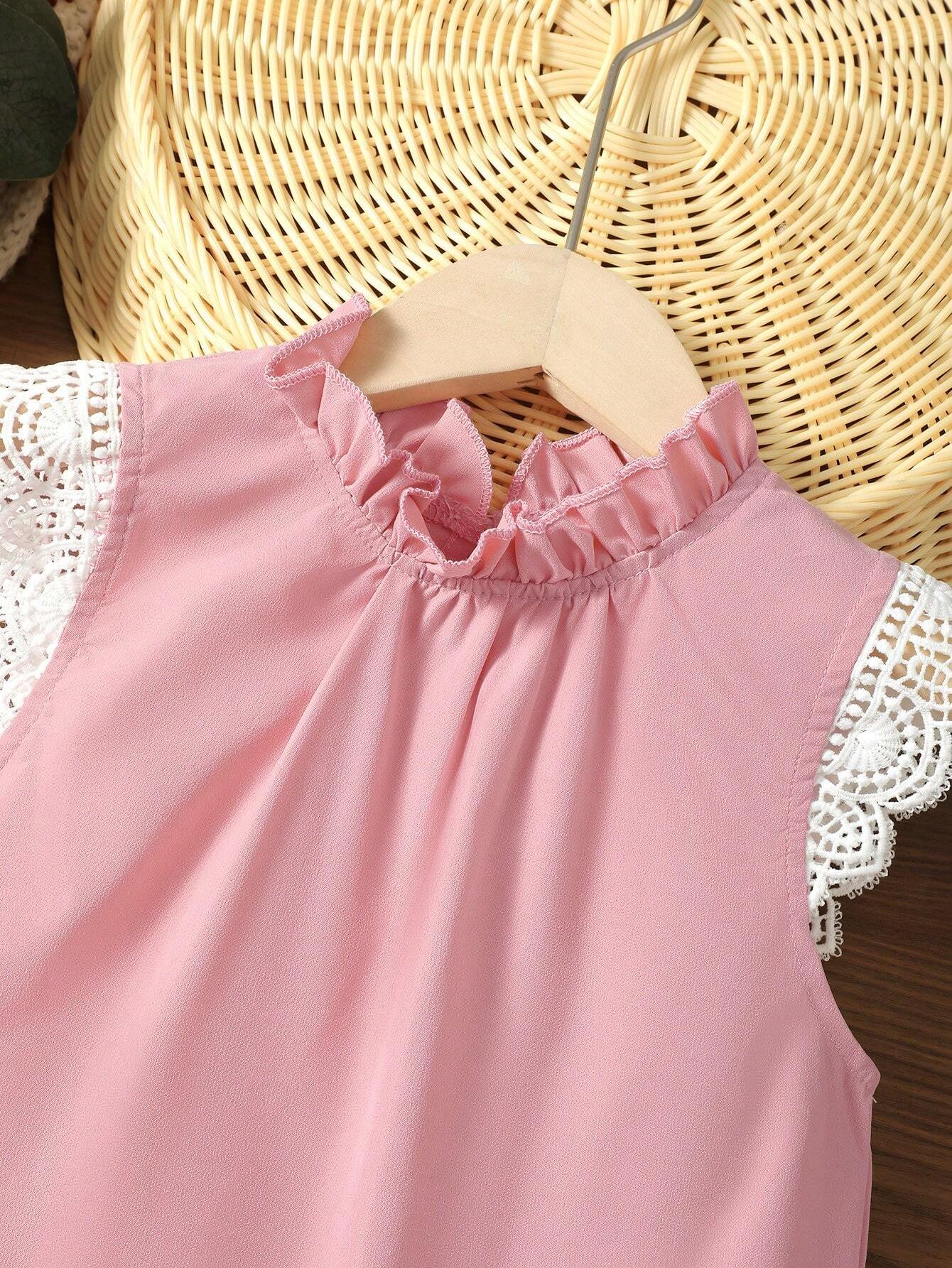 Chicas Blusa con encaje en contraste de cuello con fruncido
