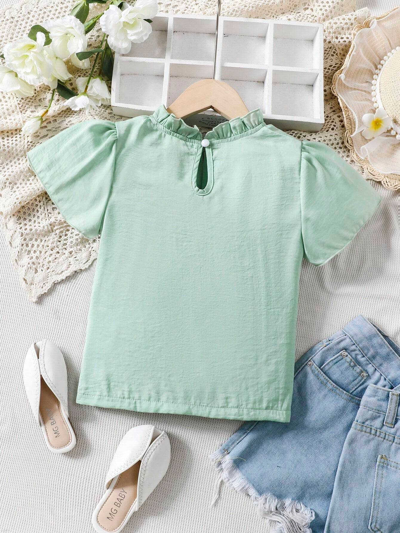 Chicas Blusa ribete fruncido de cuello alto