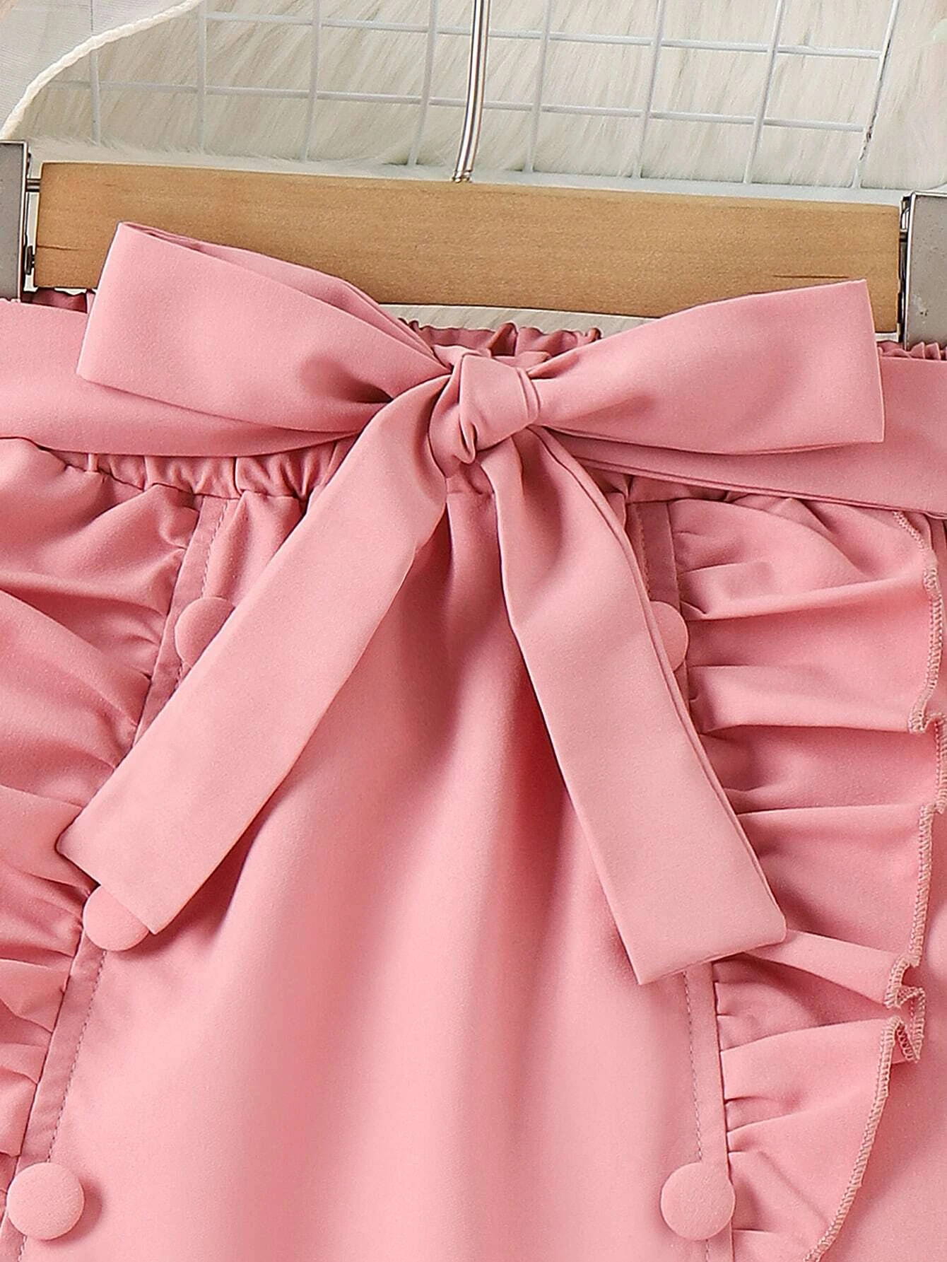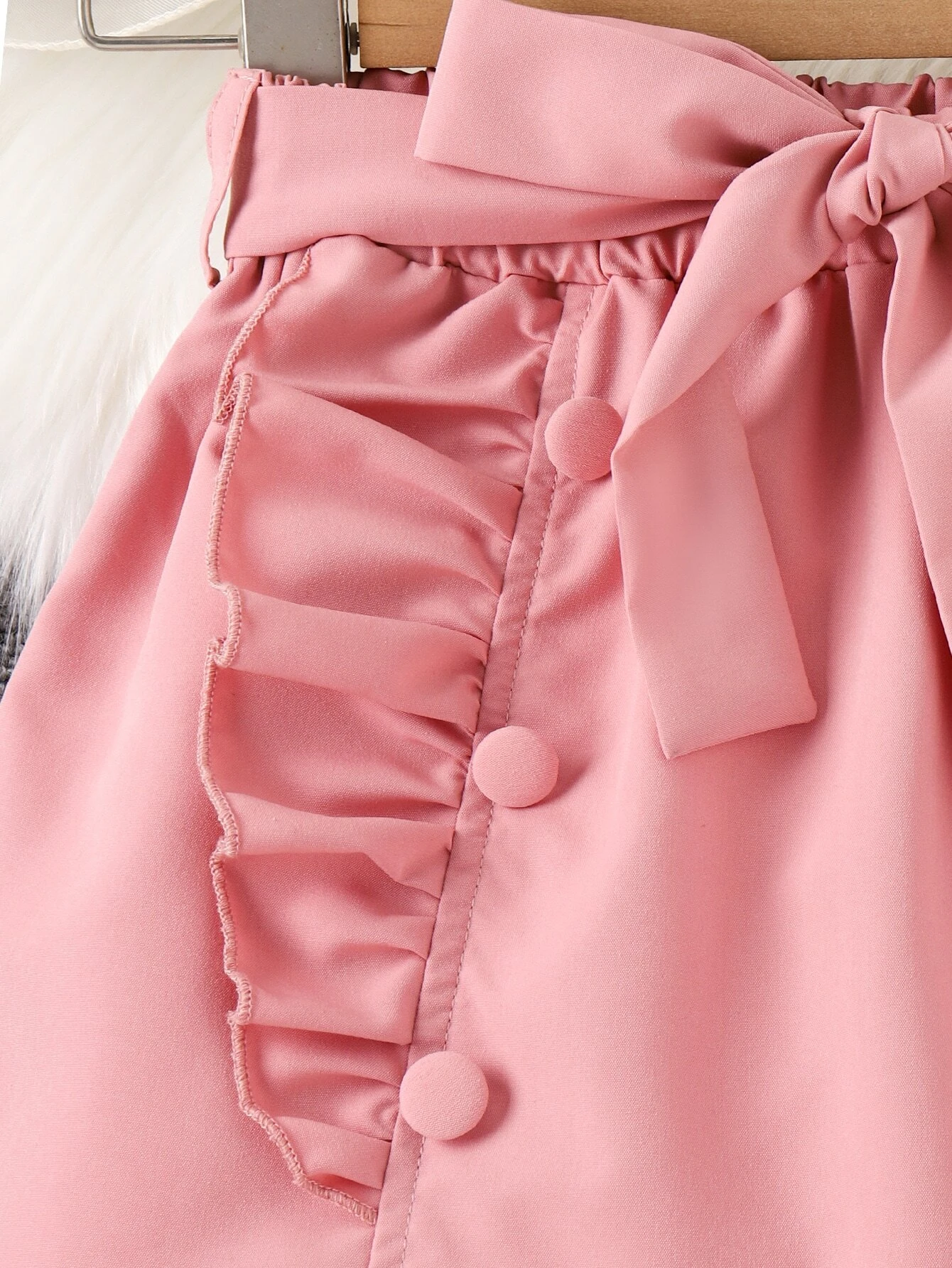 Chicas Falda ribete con fruncido con dise?o de bot?n