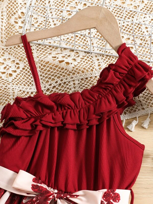 Chicas Vestido con estampado floral fruncido de cuello asim?trico