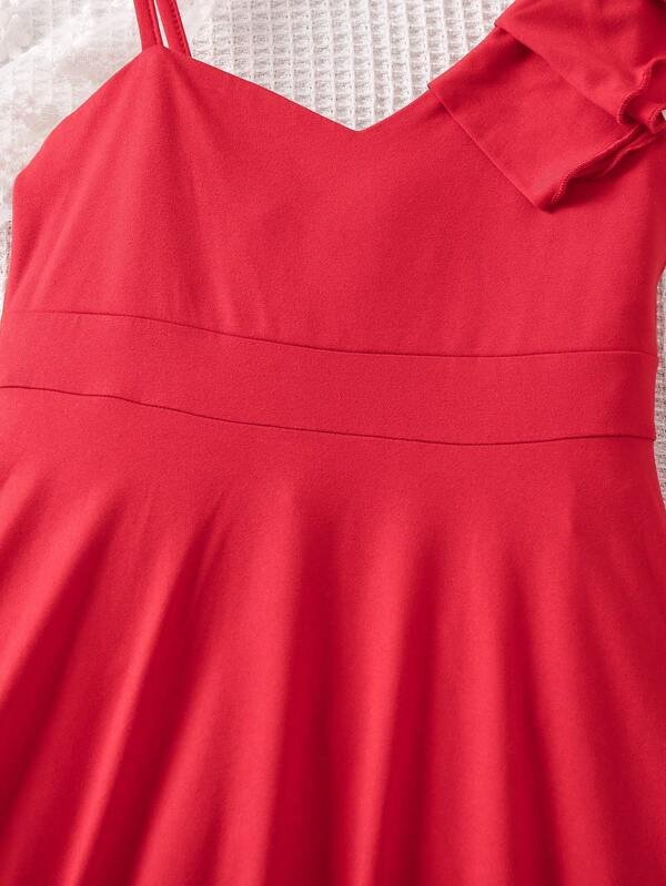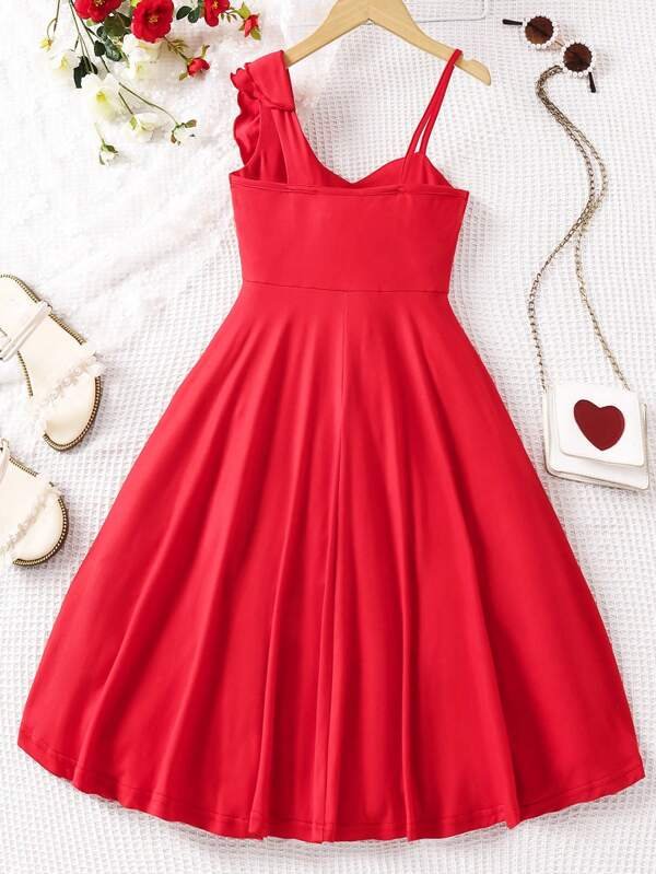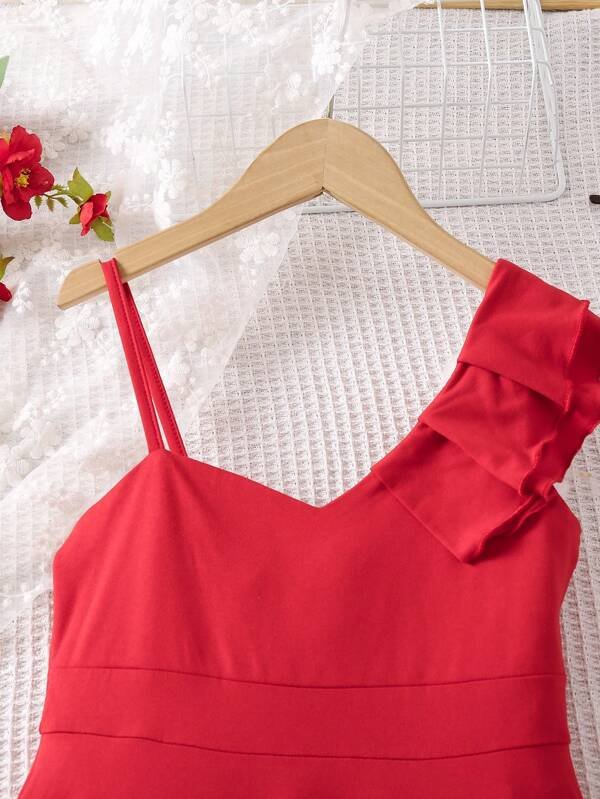 Chicas Vestido de cuello asim?trico ribete con fruncido
