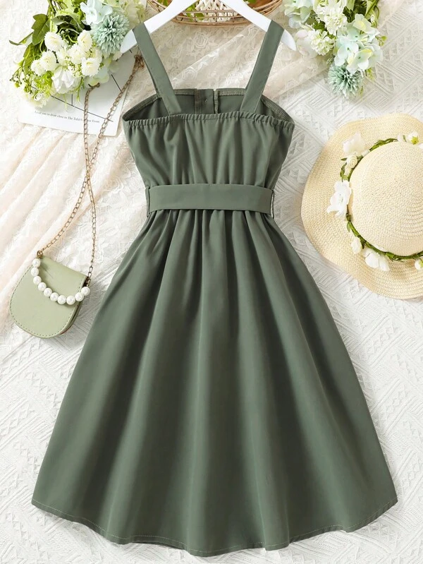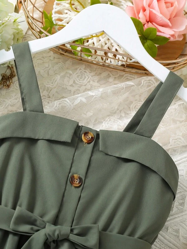 Chicas Vestido de tirantes con bot?n delantero con cintur?n