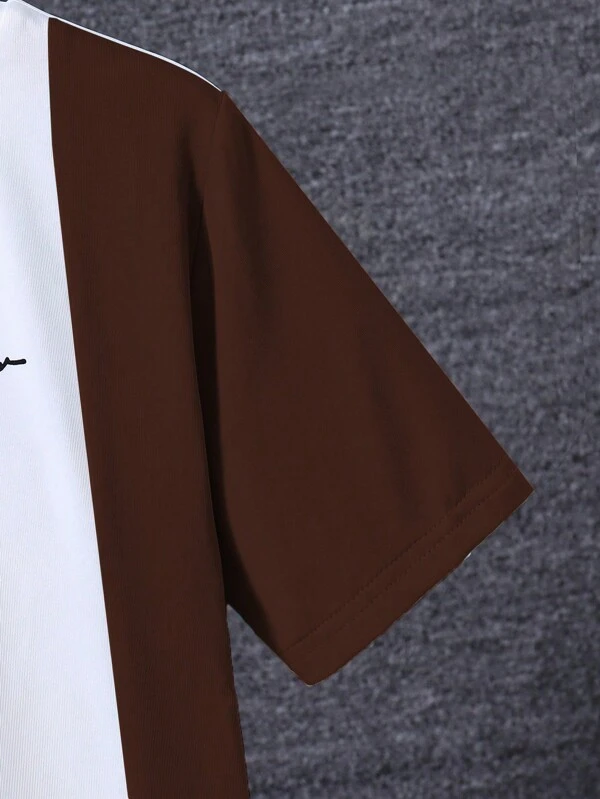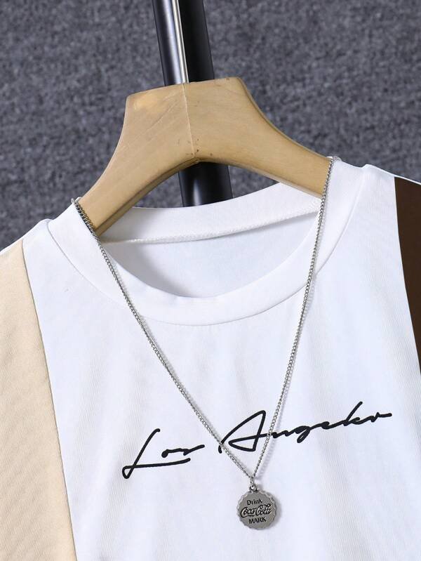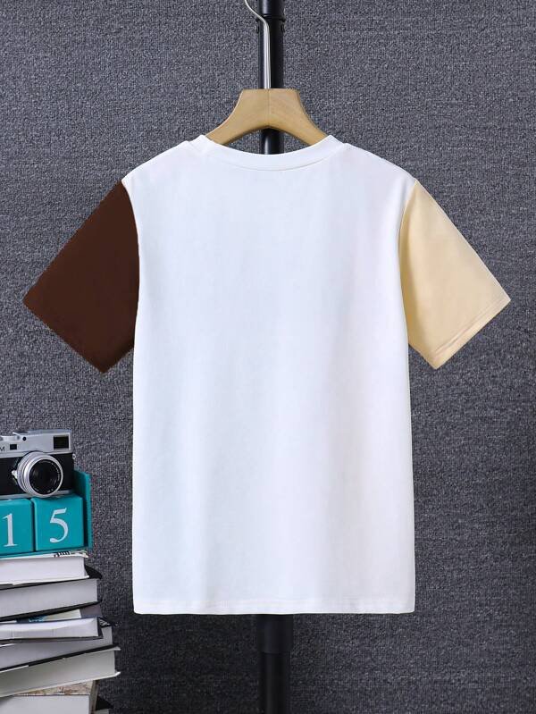Chico preadolescente Camiseta con estampado de letra de color combinado