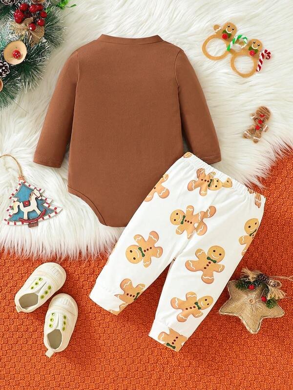 Chicos Body con estampado de oso con lazo delantero con pantalones deportivos para Navidad