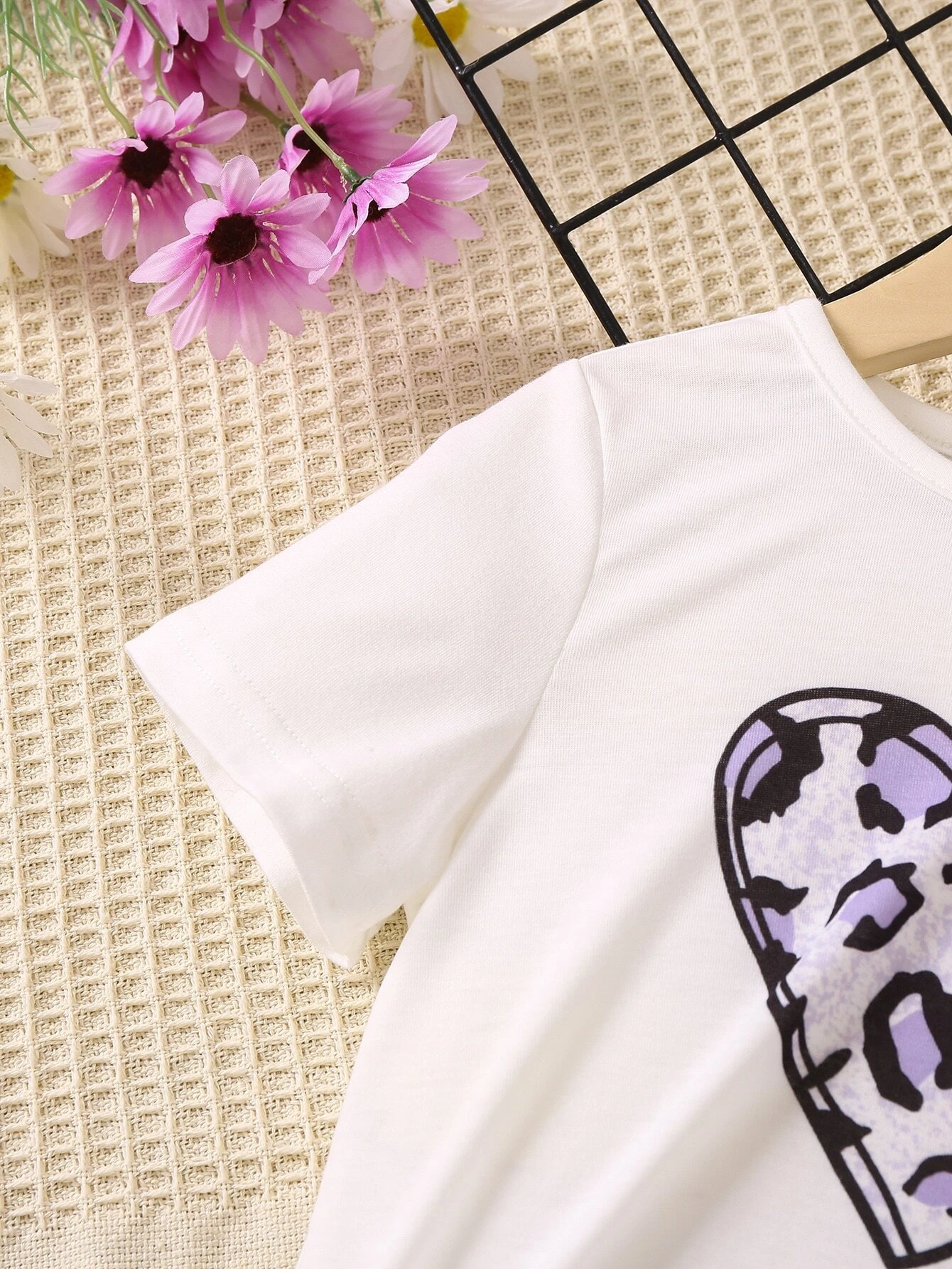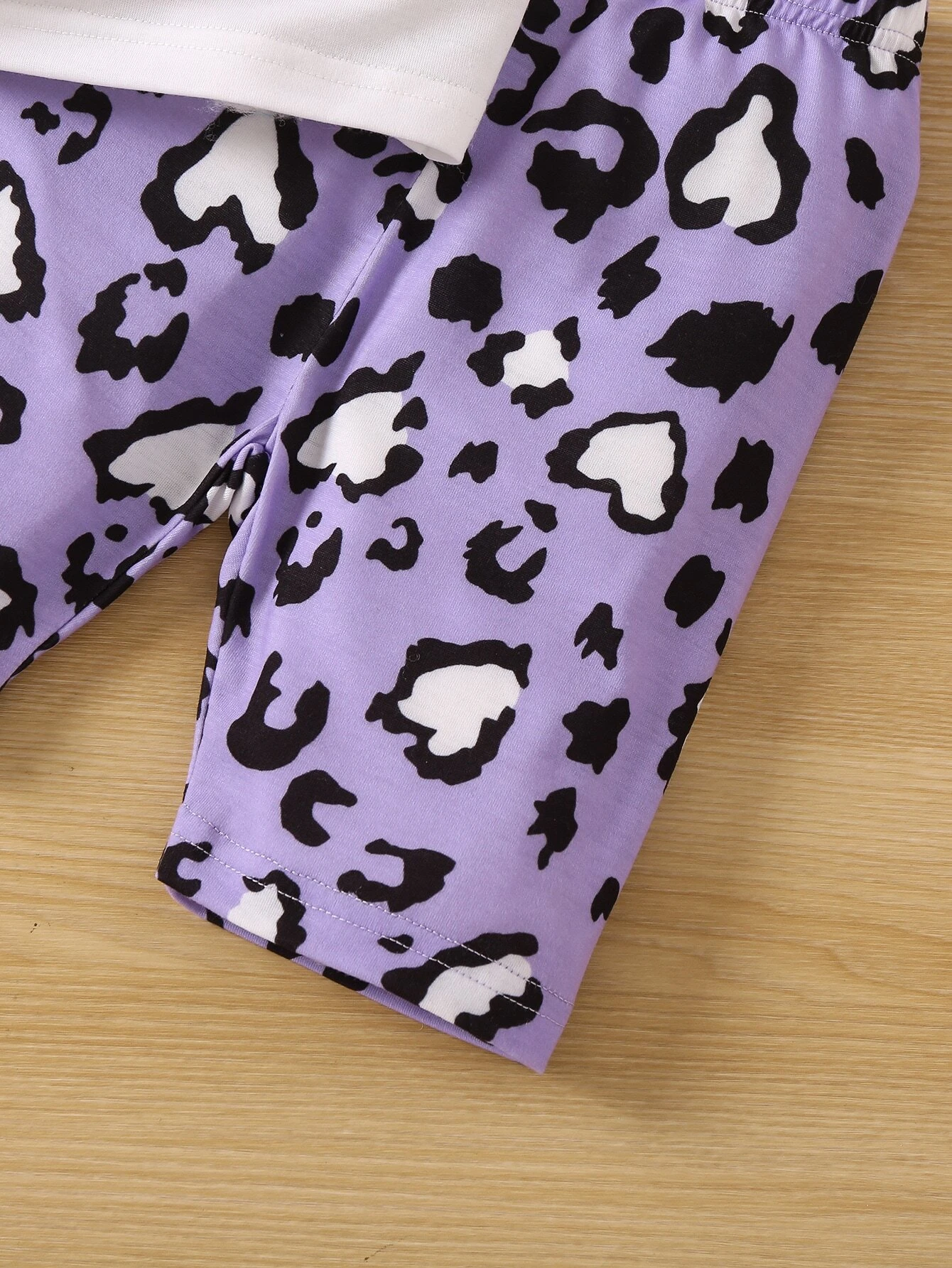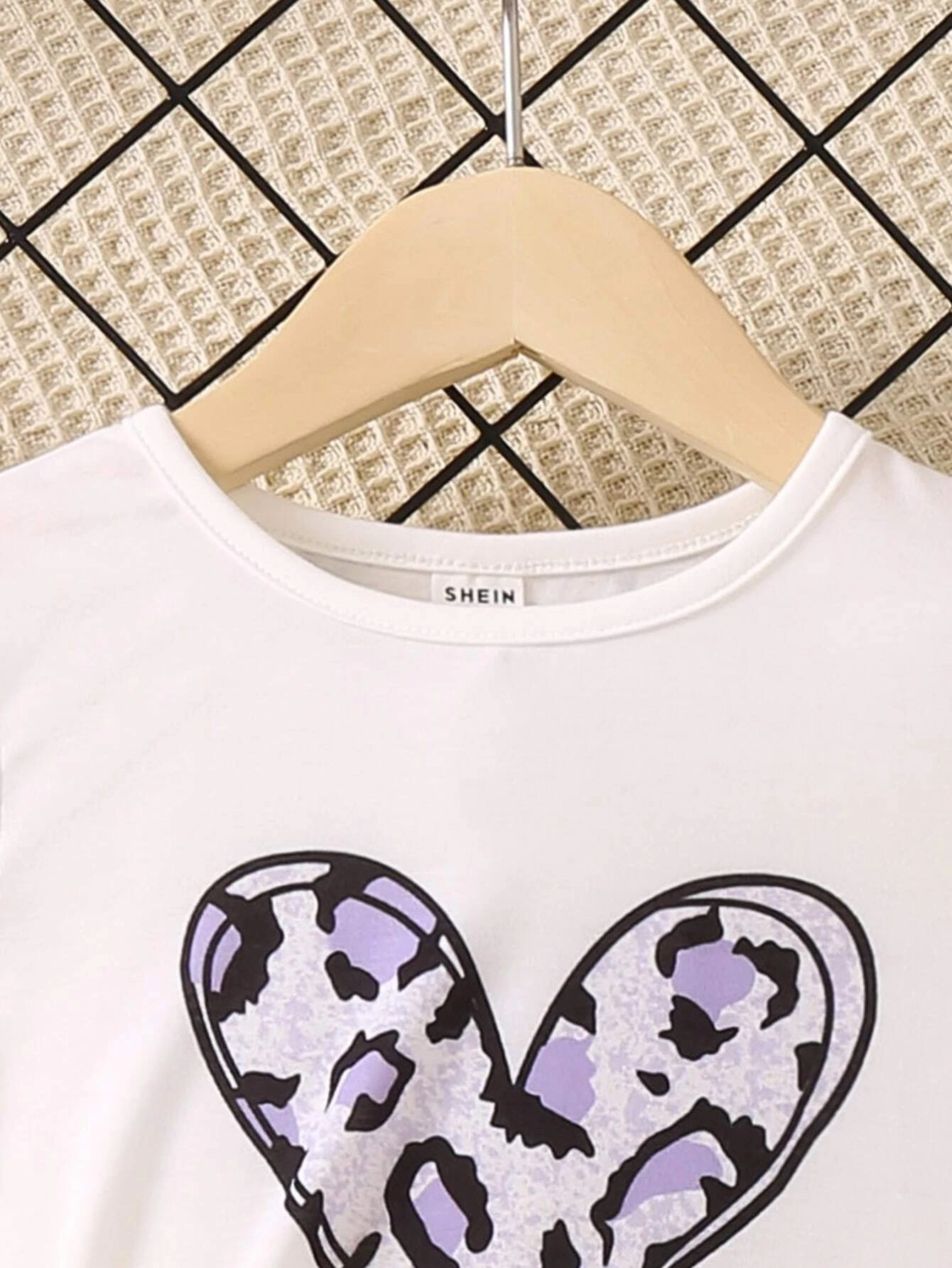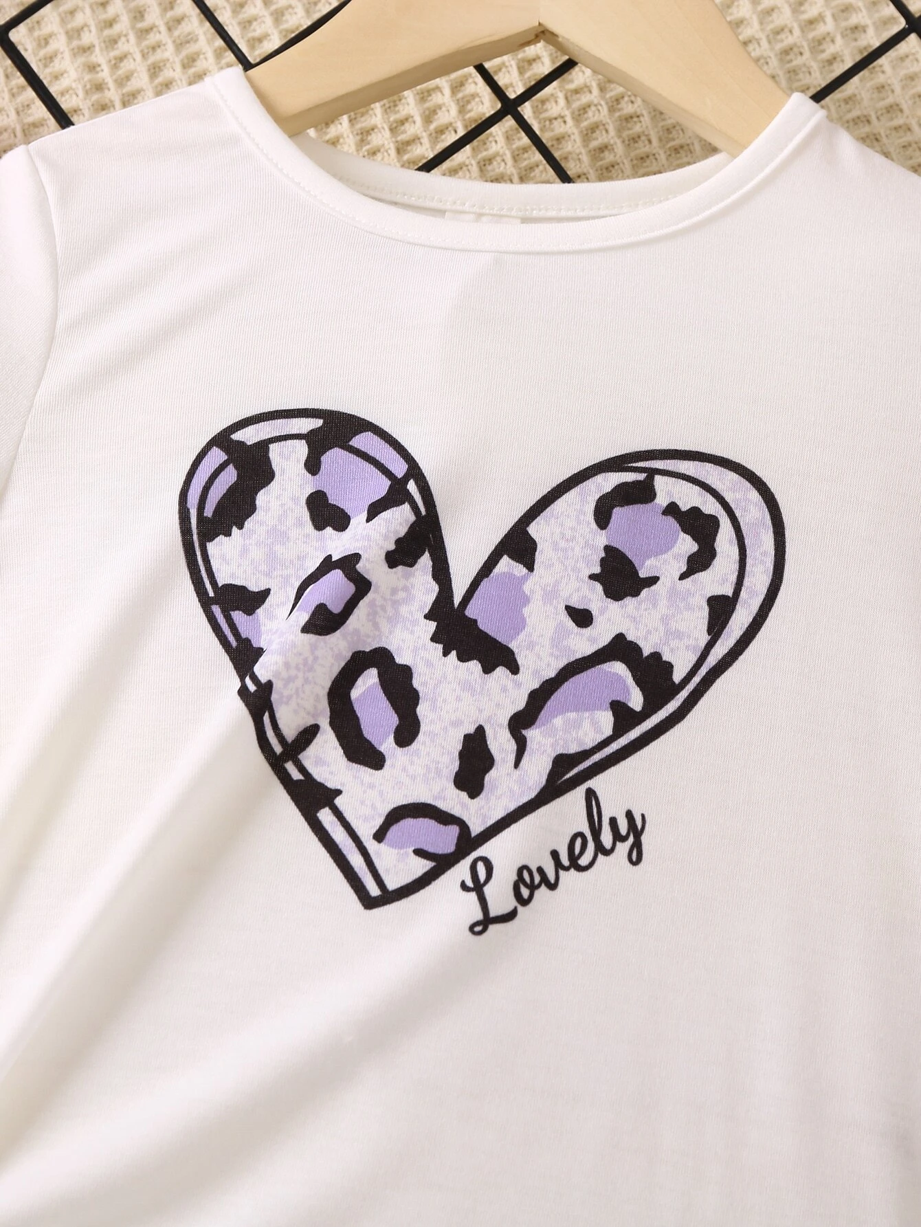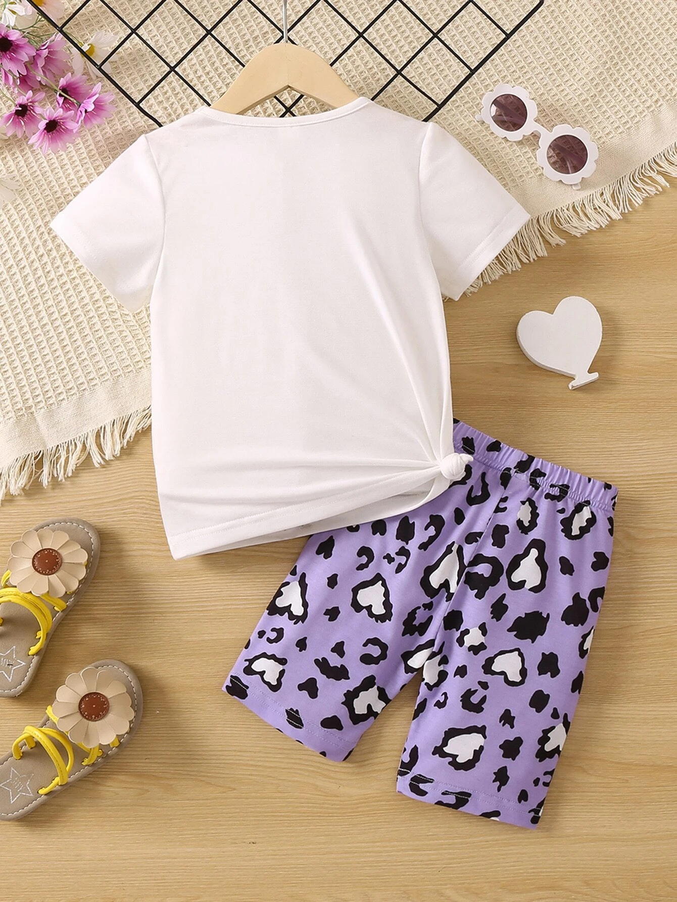 Conjunto c?modo de dos piezas con cuello redondo y mangas regulares simples y lindos con estampado de leopardo y coraz?n para ni?a joven, verano