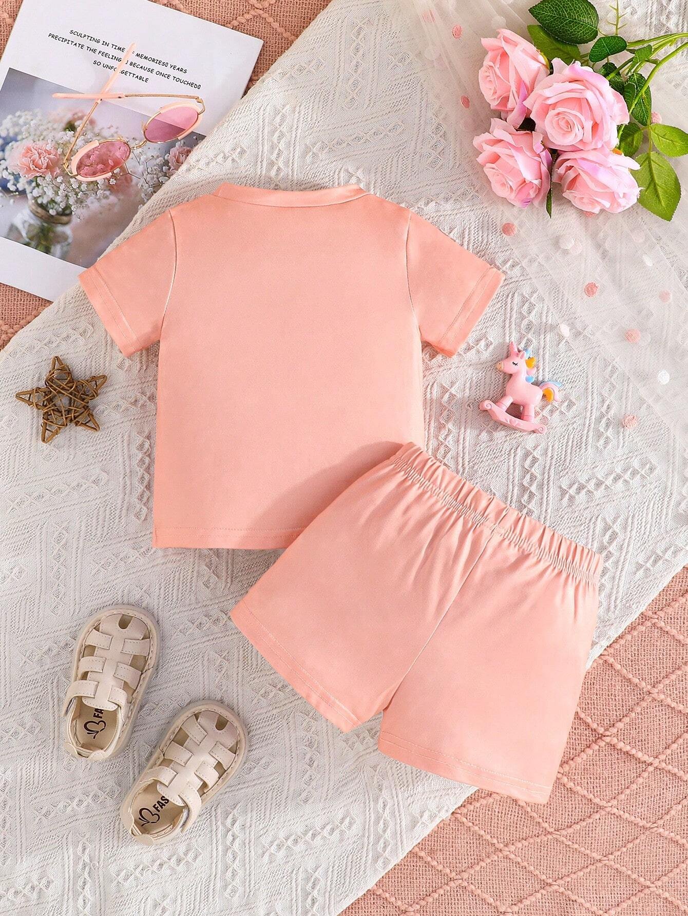Conjunto con camiseta de manga corta y shorts con estampado de letras