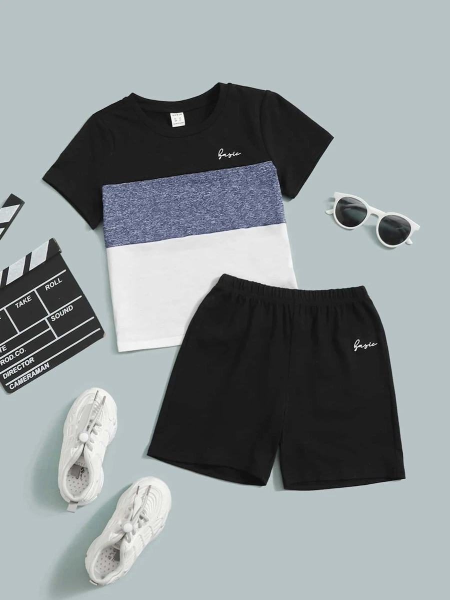 Conjunto camisa y pantal?n de color combinado con parche de bolsillo