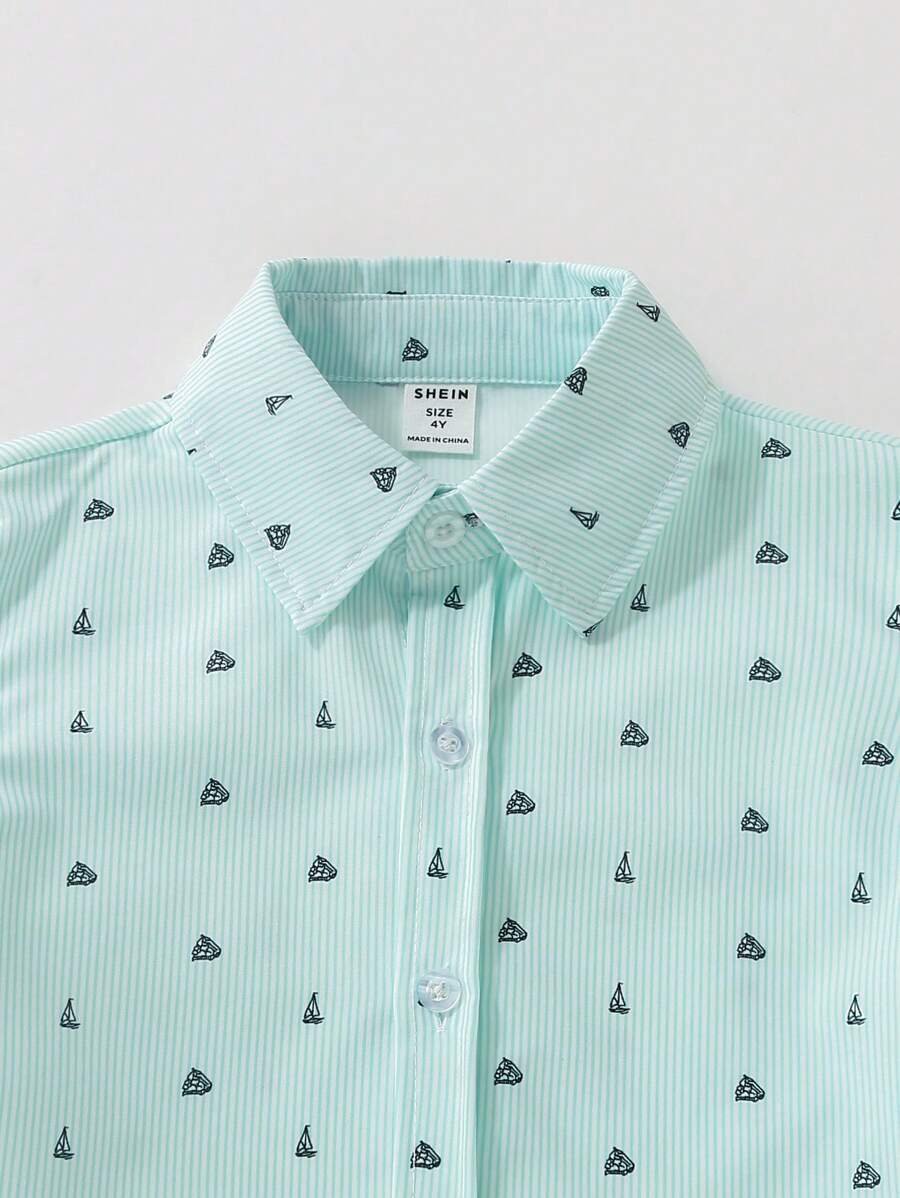 Conjunto De 2 Piezas De Camiseta De Manga Corta Para Niño Con Estampado De Velero