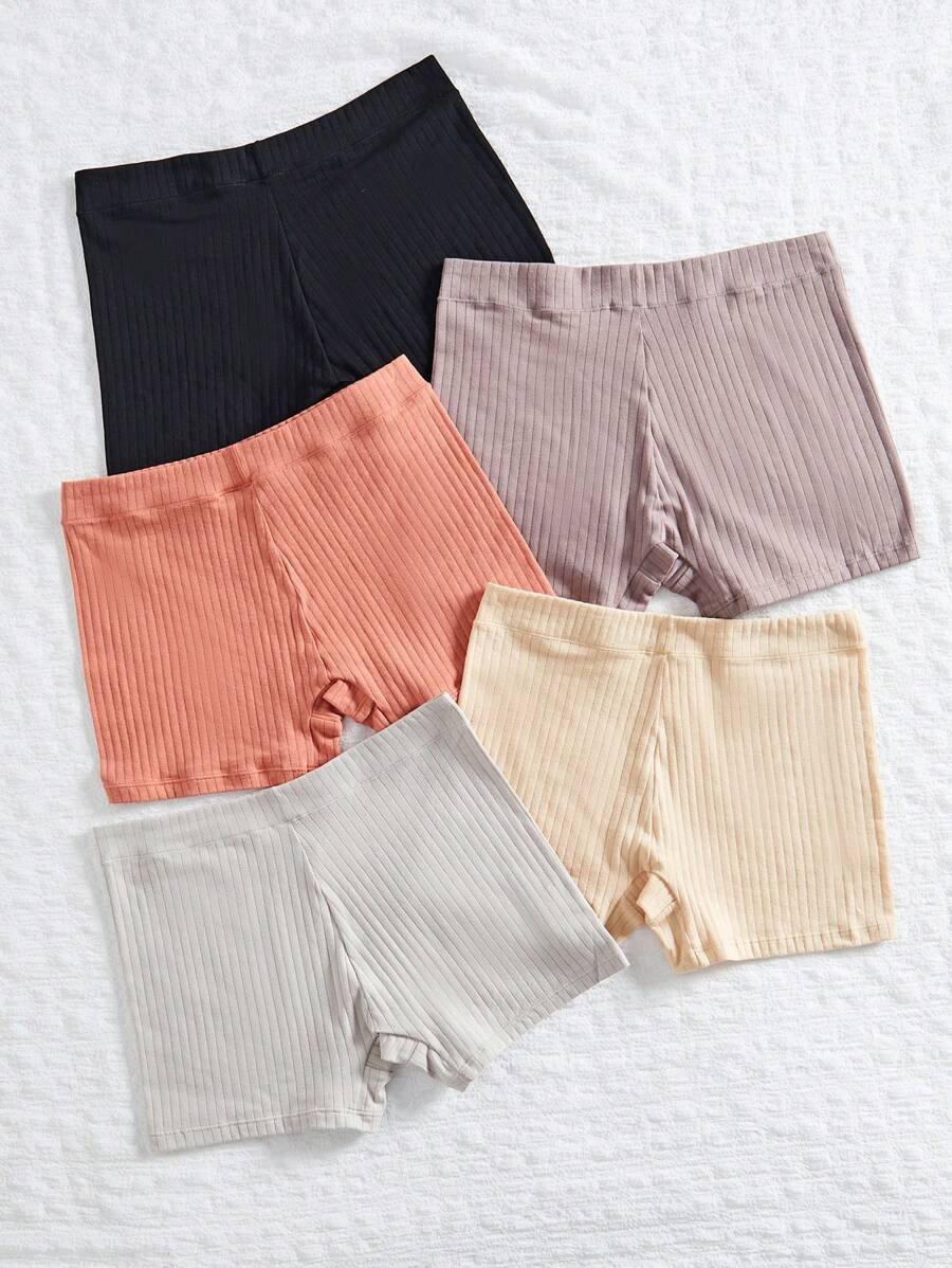 Conjunto De 5 Piezas De Calzoncillos Tipo Boxer De Punto Acanalado De Color S?lido