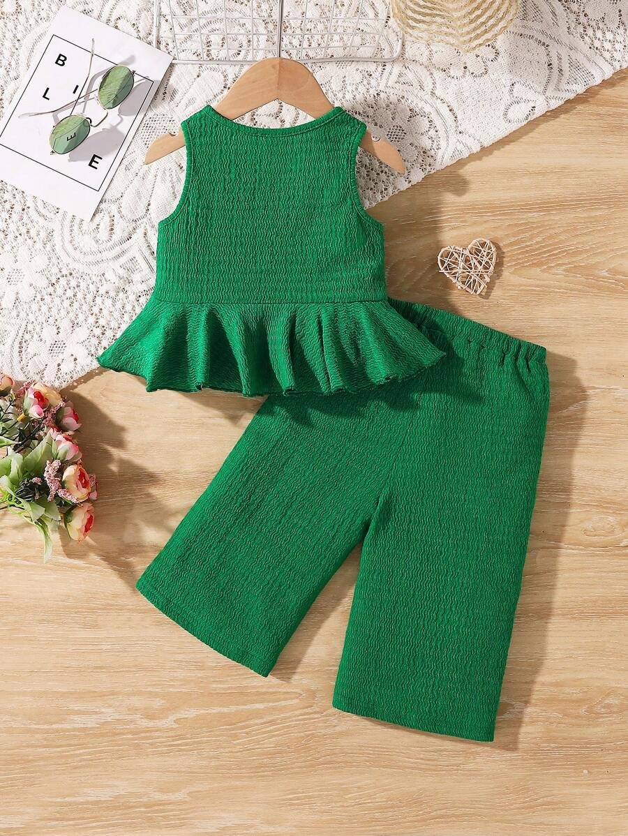 Conjunto de bebé niña de verano con linda blusa sin mangas de un solo color con cintura elástica