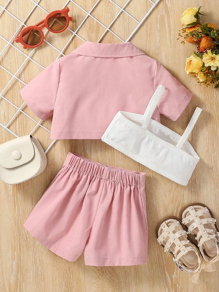 Conjunto de beb? Camisa de manga corta+ Top de tirantes+ Shorts