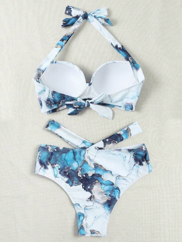Producto anterior Siguiente producto Conjunto de bikini con estampado de m?rmol Top sujetador push up halter con tira cruzada & Bottom bikini hipster con abertura Traje de ba?o de 2 piezas SKU: swswim23210413792 Categoría: Trajes de baño y body Este producto no está disponible porque no quedan existencias. Descripción Descripción
