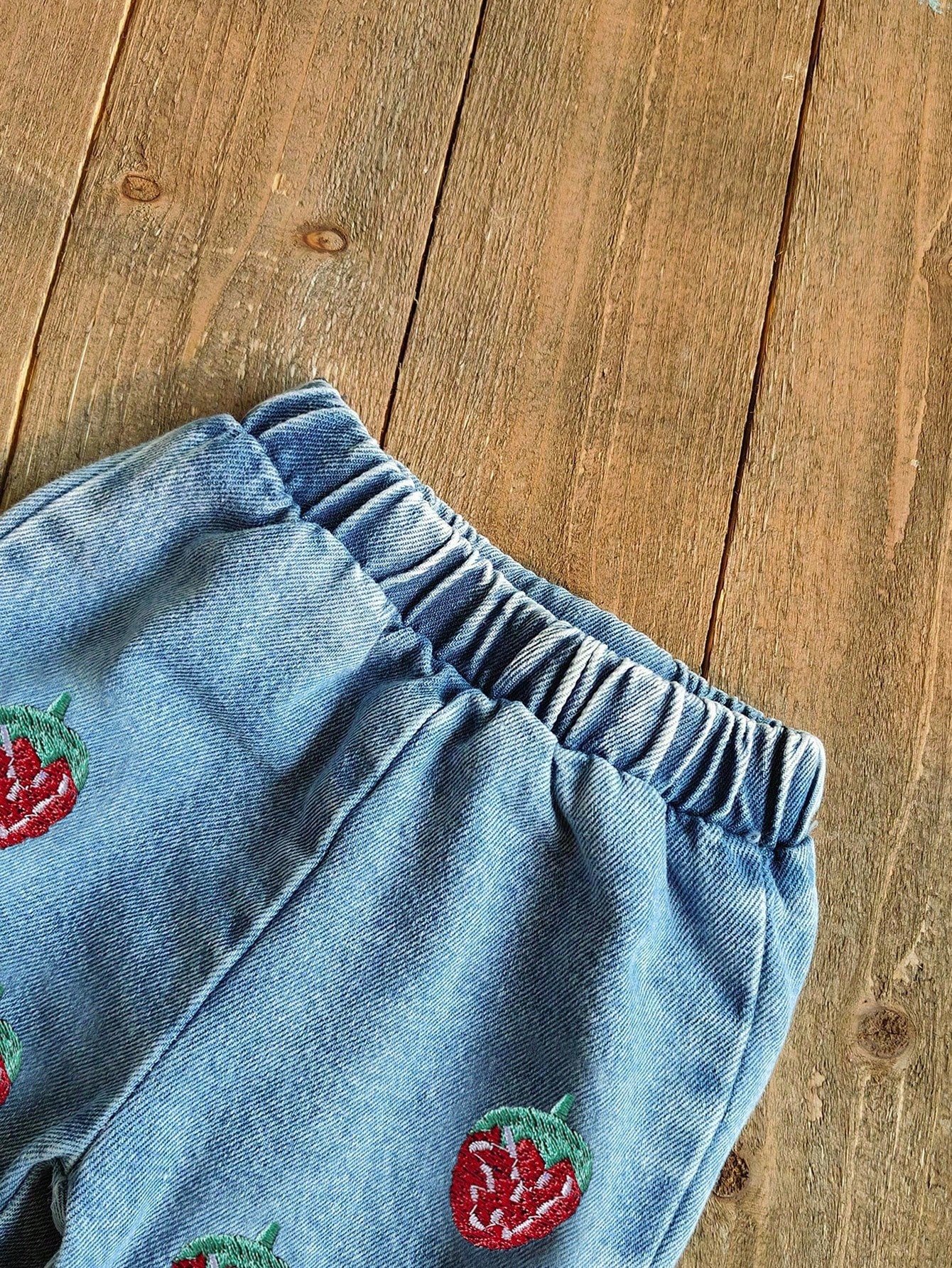 Conjunto de blusa cuello redondo con pantalones de mezclilla
