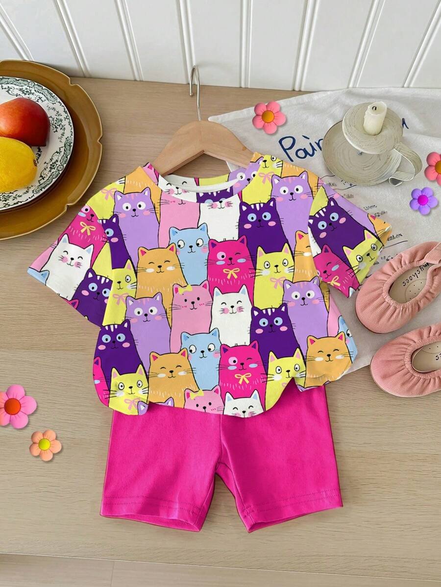 Conjunto de camiseta de cuello redondo y leggings con estampado lindo
