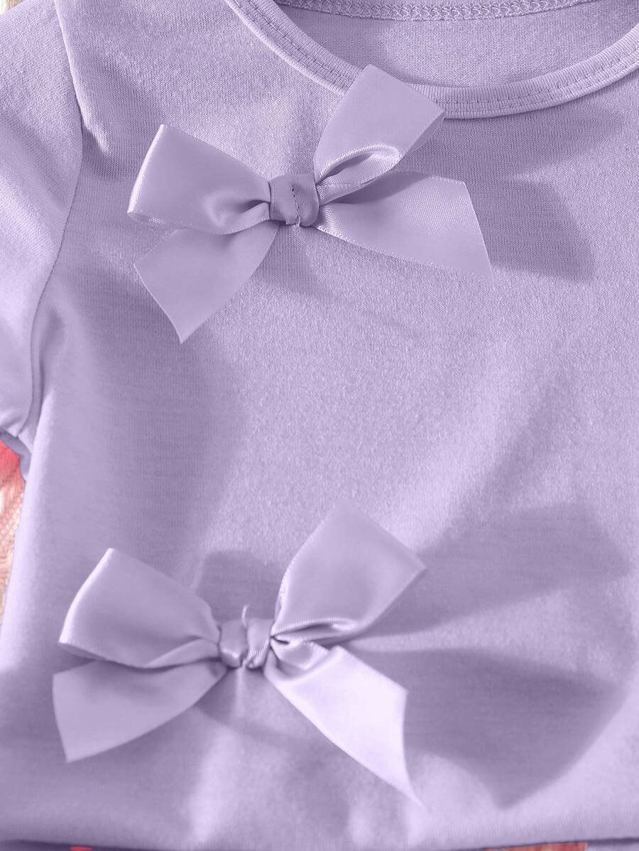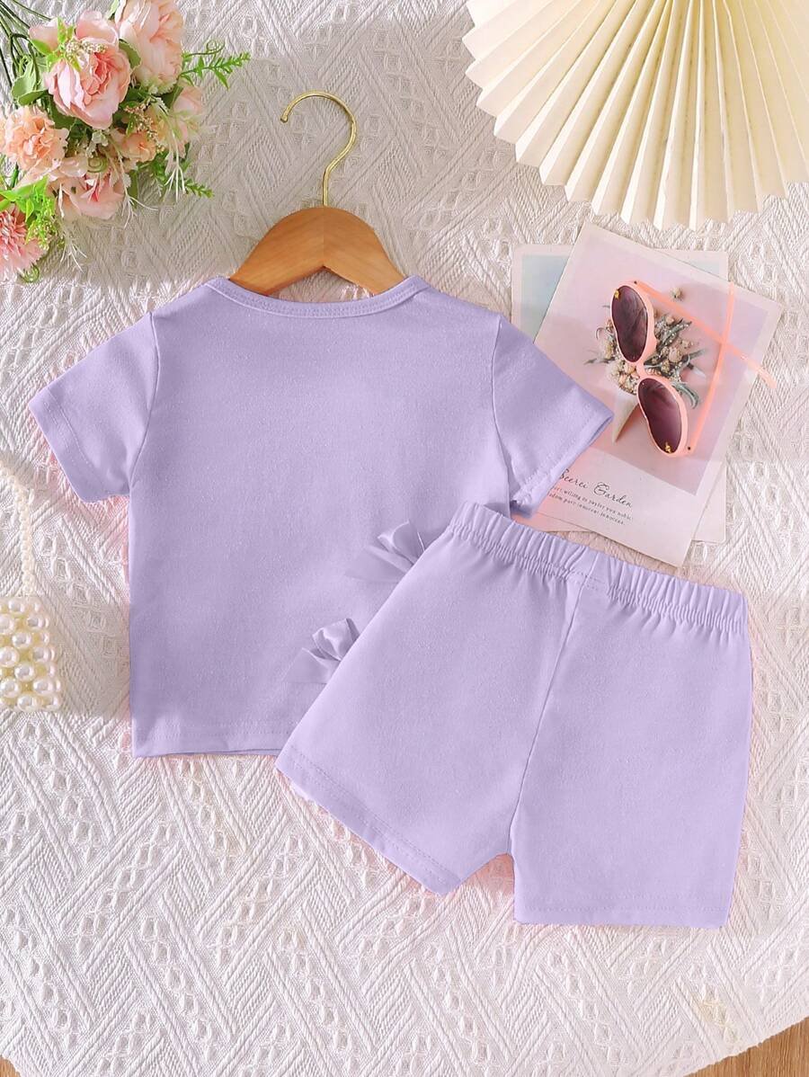 Conjunto de camiseta rosa con decoración de lazo Y pantalones cortos