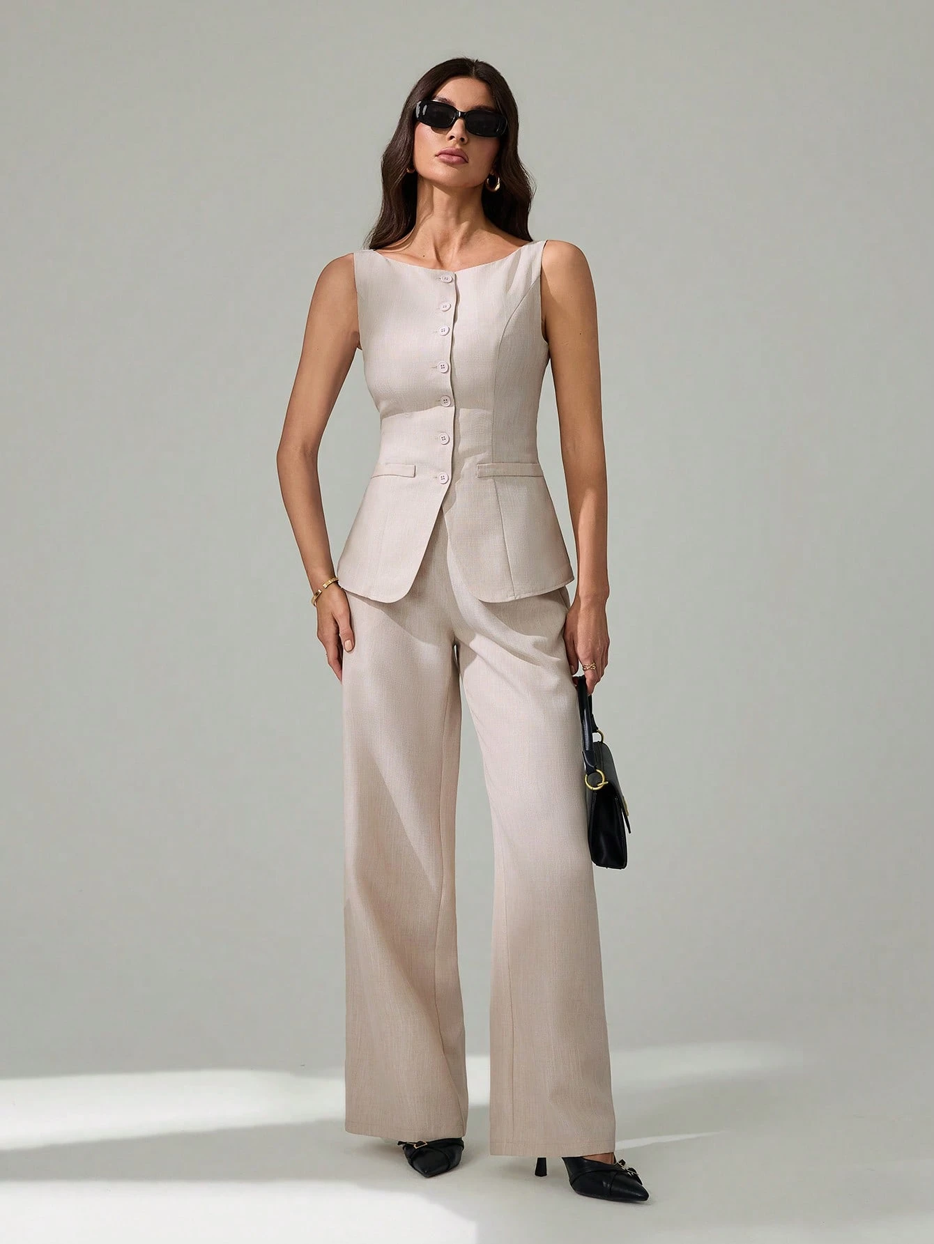 Conjunto de chaleco sin mangas y pantalones elegante